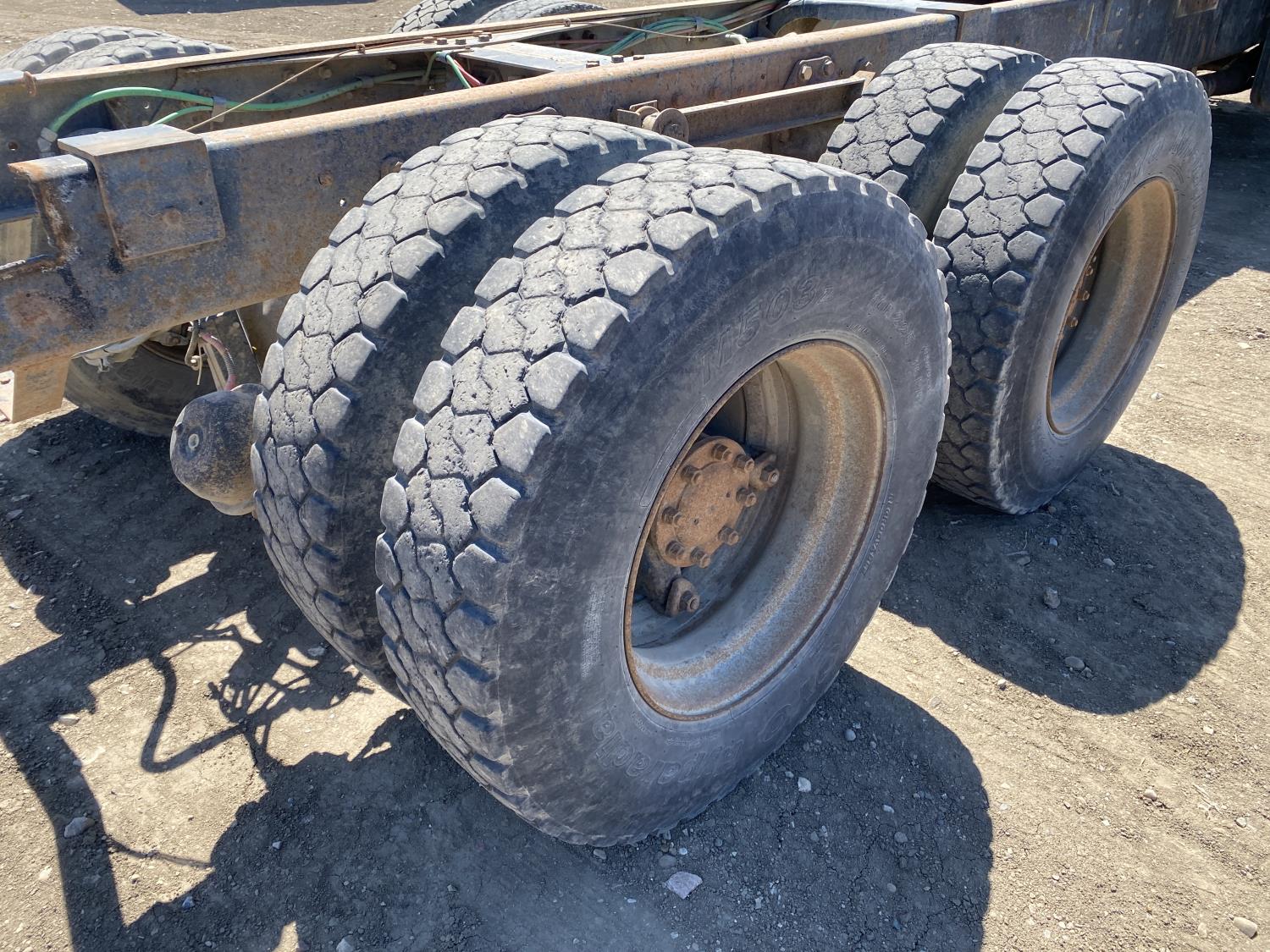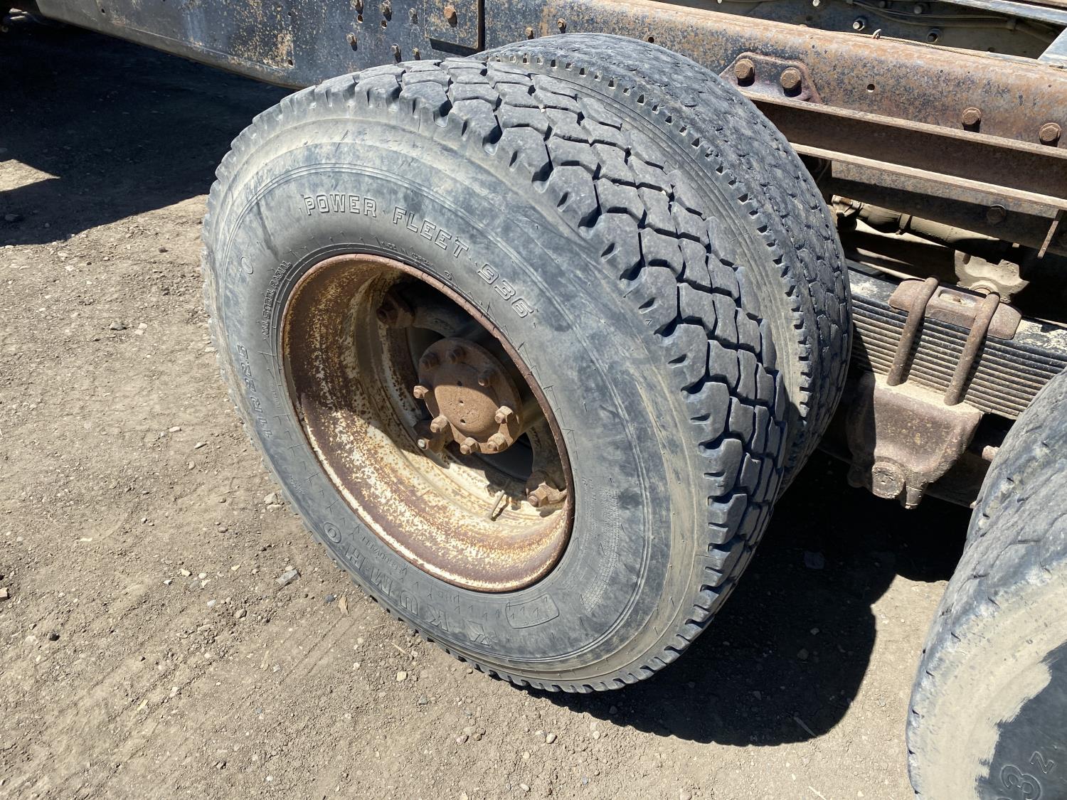 Detroit 10678517 7.0 L 6 cylinder engine, Ford 7LL manual transmission, air ride driver seat, PTO pump, spring suspension, 10,850 lb front axle, 34,000 lb rear axles, diff lock, 222 inch WB, 198 inch from back of cab to end of frame, 315/80R22.5 front tires, 11R22.5 rear tires