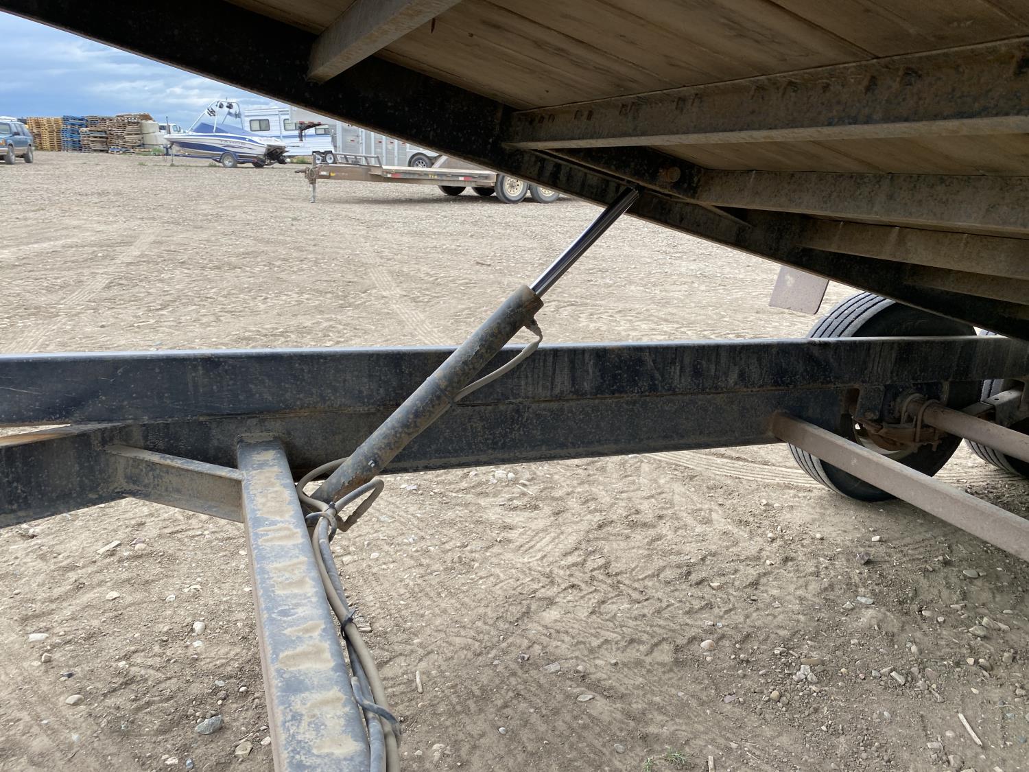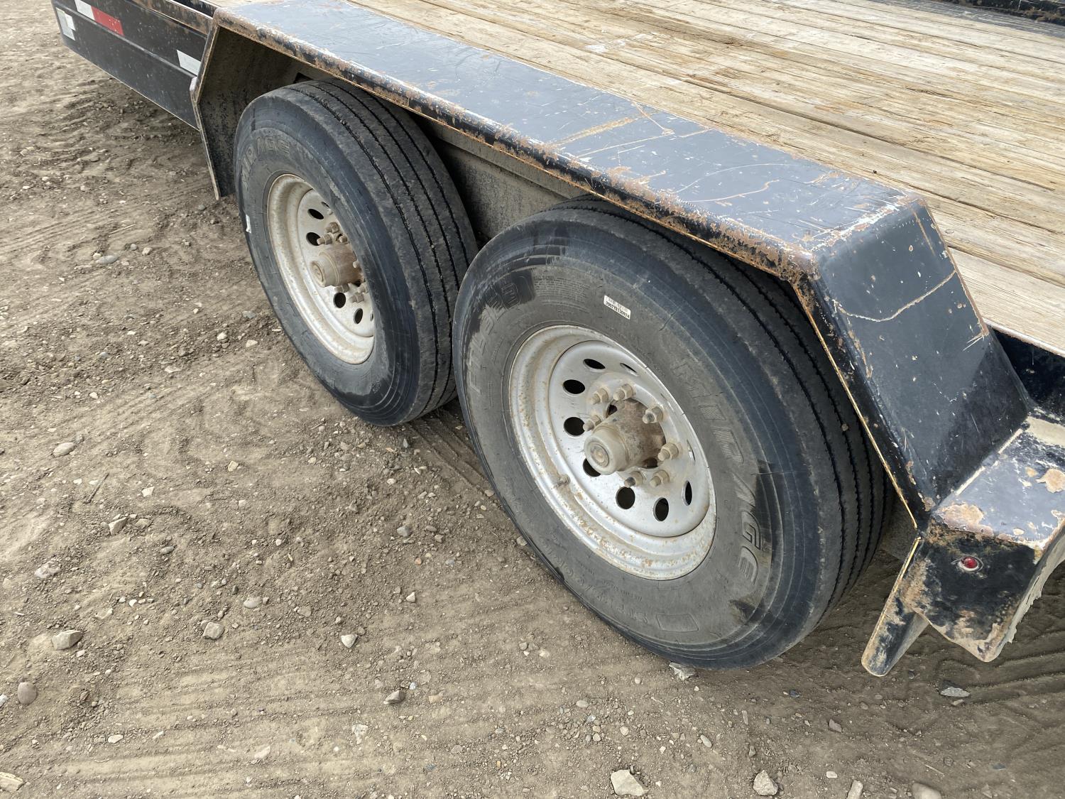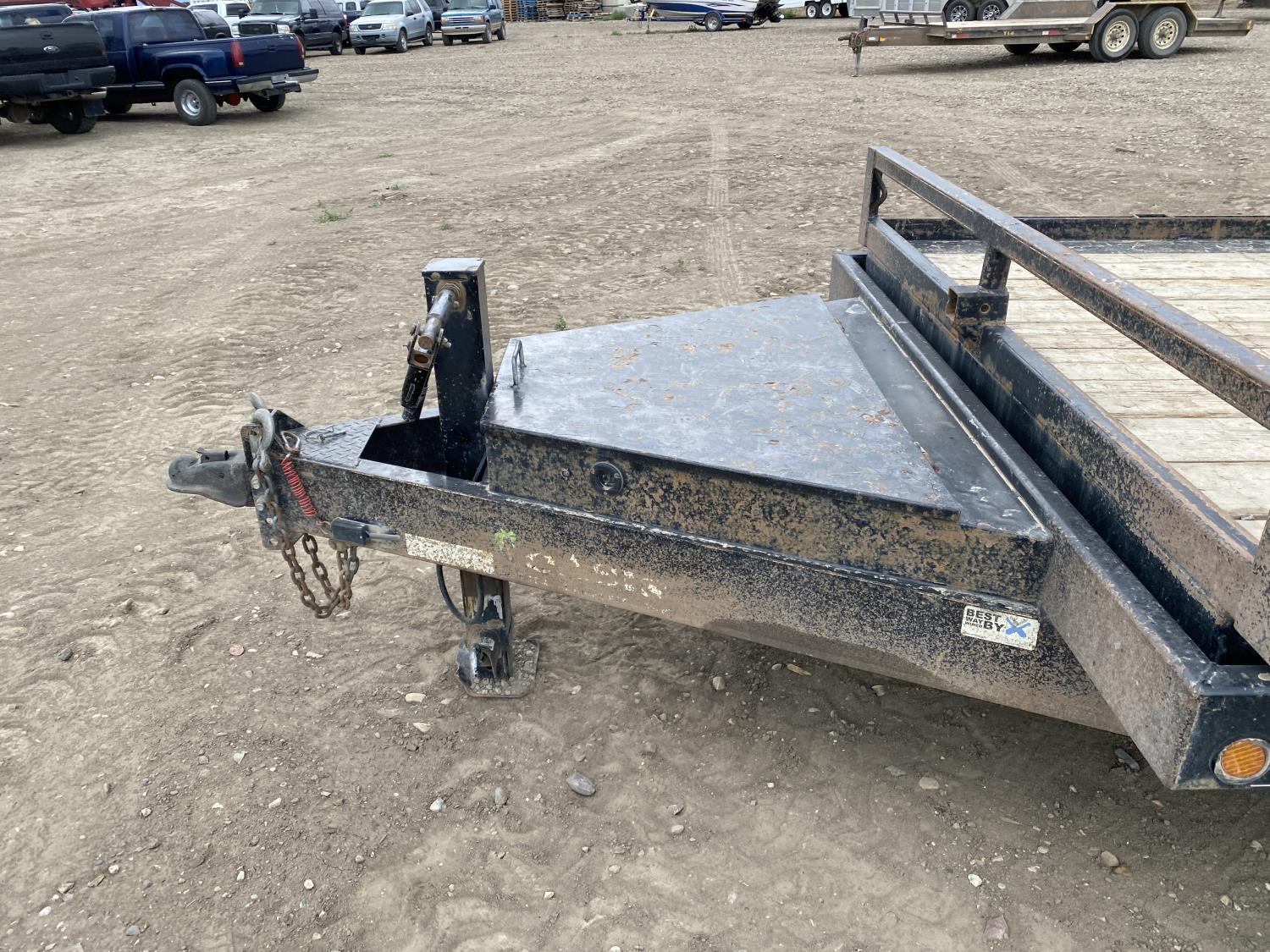 81 inch wide deck, 20 ft tilt deck, wood deck, electric brakes, spring suspension, ball hitch, tool / storage box, rub rails, stake pockets, 7000 lb axles, 235/80R16 tires