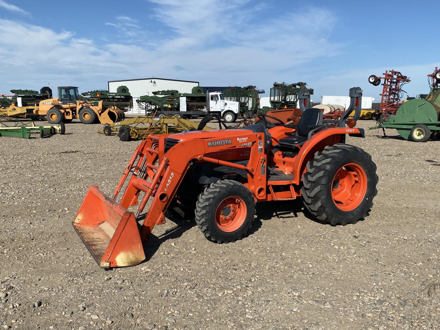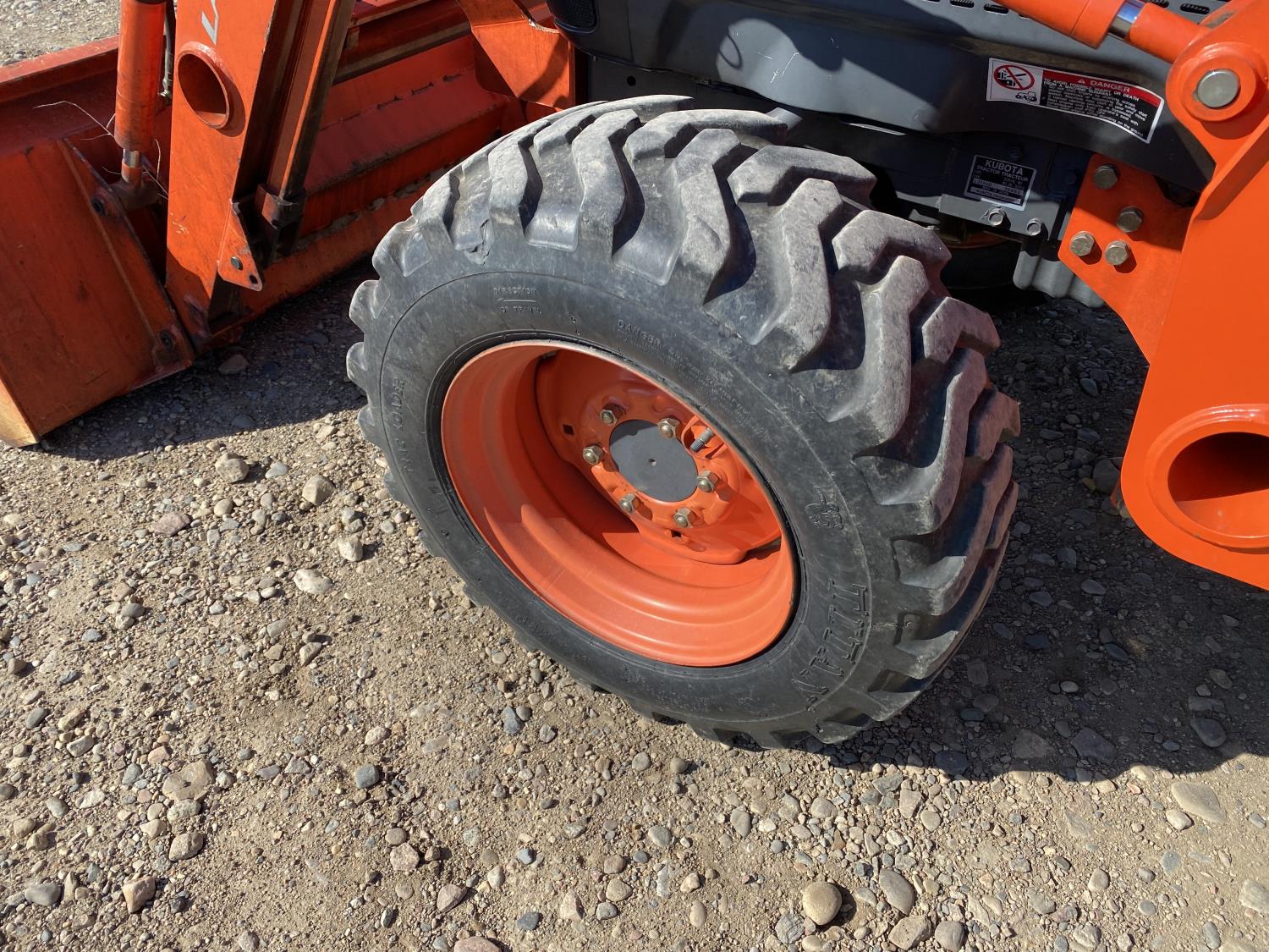 Kubota LA513 loader, 66 inch bucket, Kubota 1503 1.5 L 3 cylinder 32 HP, engine, 25 PTO HP, 13 GPM hydraulic pump, hydrostatic transmission, open station platform, 540 PTO, 10-16.5 front tires, 420/70-24 rear tires