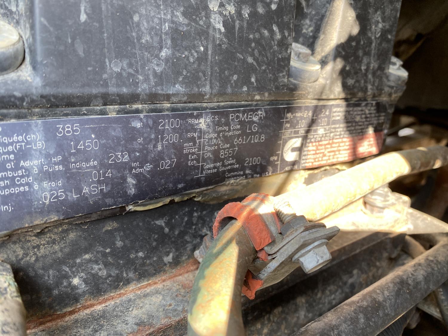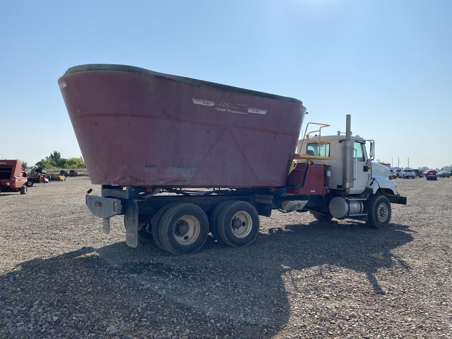 Cummins ISM 385V 10.8 L 6 cylinder 385 HP engine, engine block heater, automatic transmission, A/C, cruise control, air ride driver seat, front PTO pump, rubber block suspension, 18,000 lb front axle, 46,000 lb rear axles, differential lock, in cab Digi-Star EZ 2500V, 935 ft tub capacity, Supreme International 1200T feed mixer, vertical twin screw, 40 inch x 32 inch T discharge door, 32 inch discharge, left hand discharge, 240 inch WB, aluminum front wheels, 11R22.5 tires