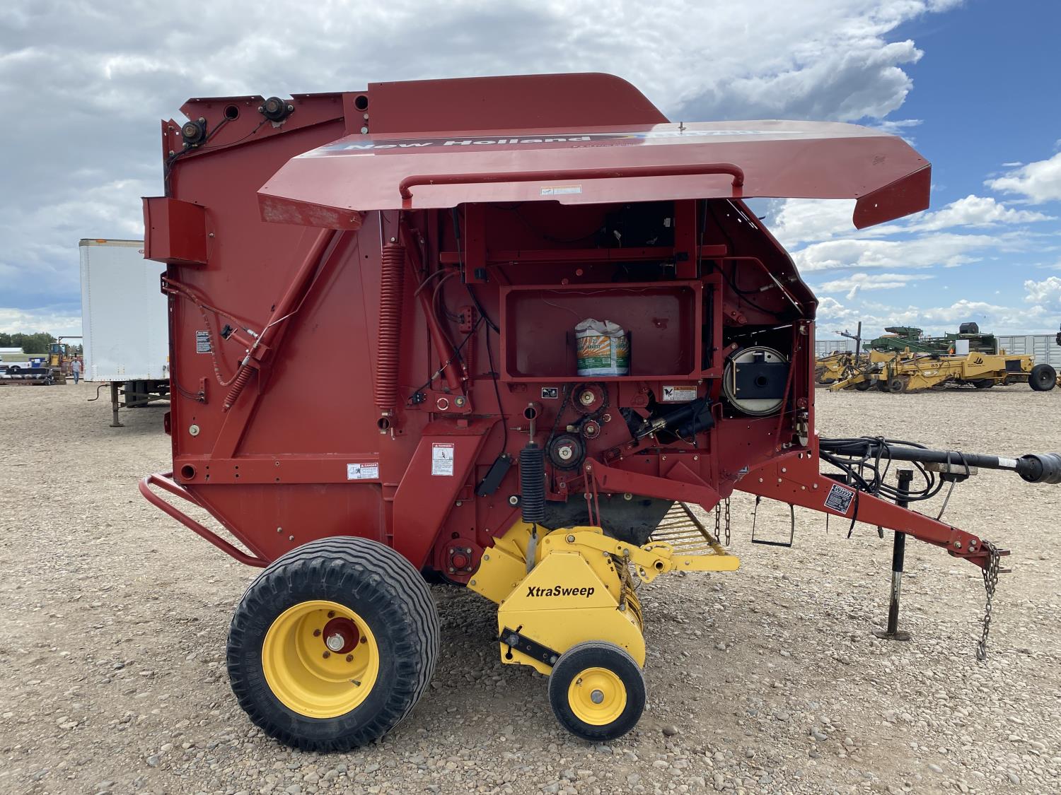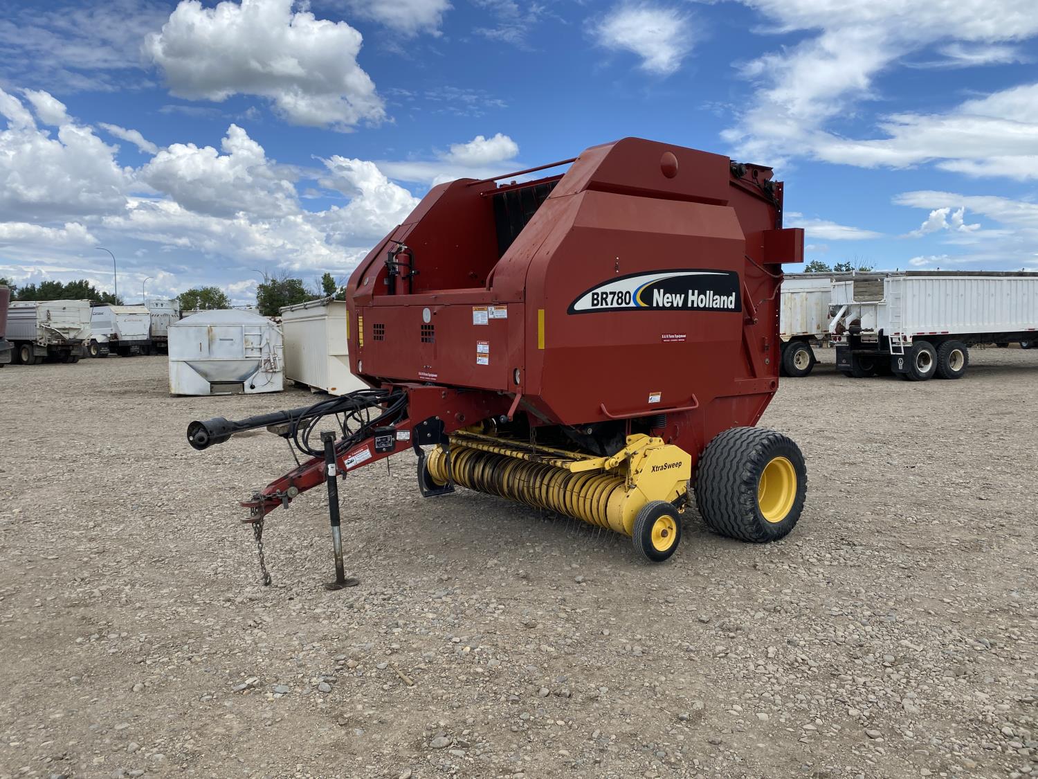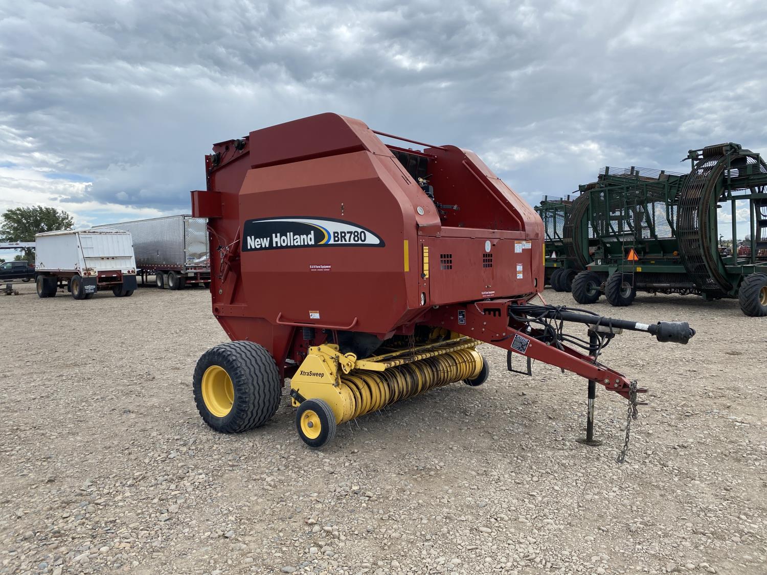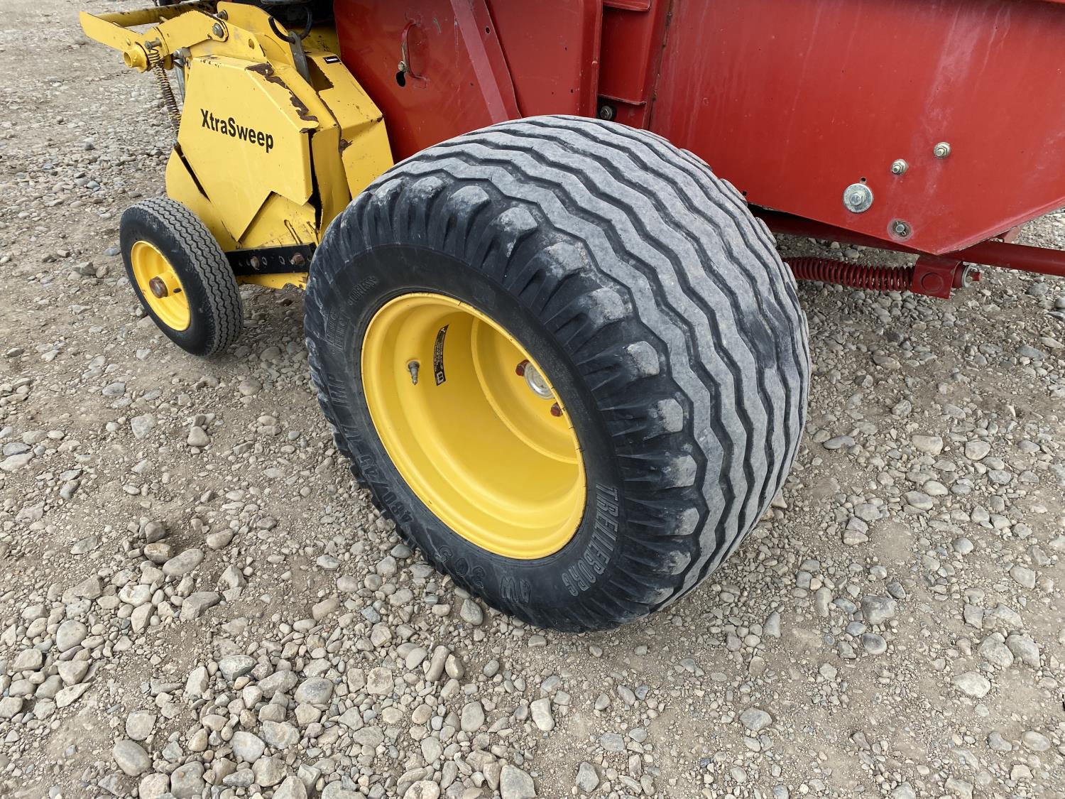 1000 PTO, XtraSweep, 78 inch pickup, hydraulic lift, (2) gauge wheels, 5x6 ft bale size, twine tie or net wrap, monitor, kicker, hydraulic tension, 20,000 bale count, 480/45-17 tires