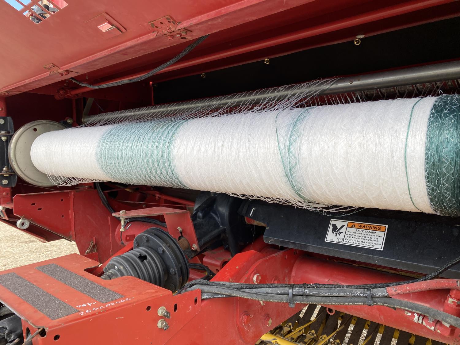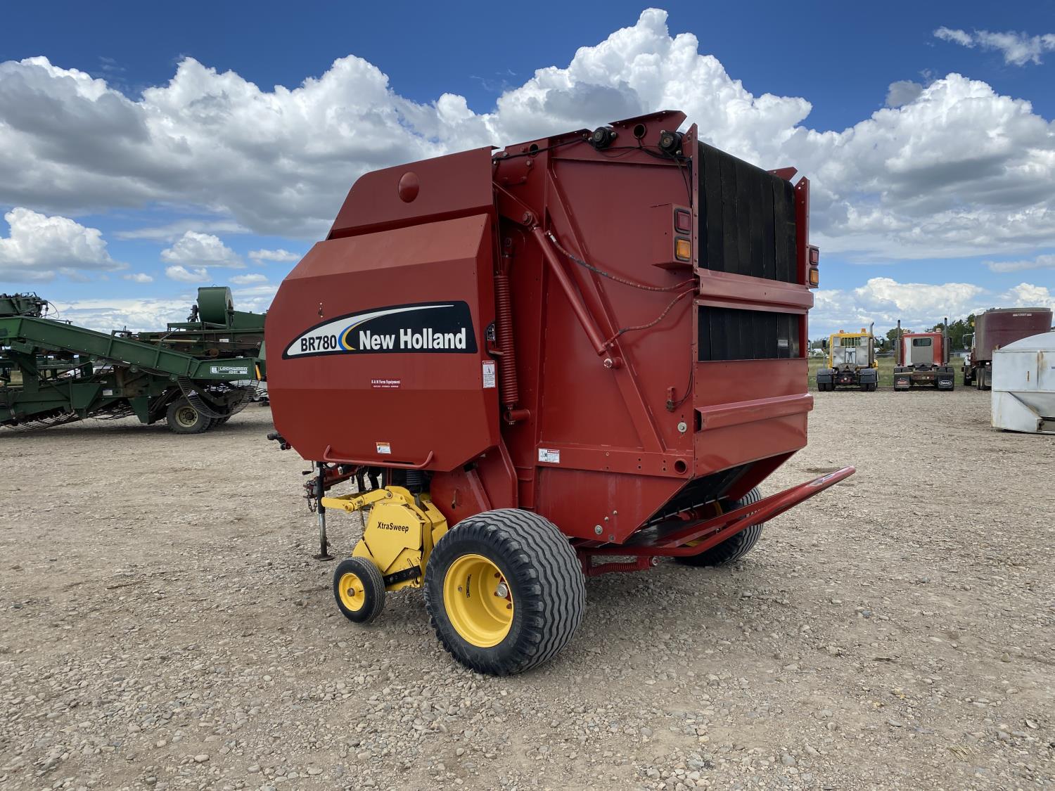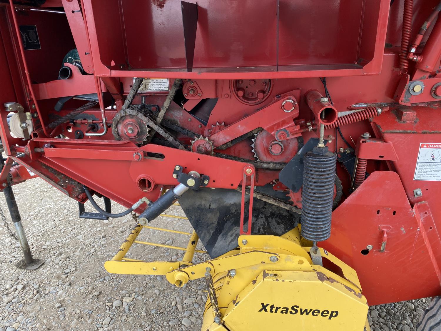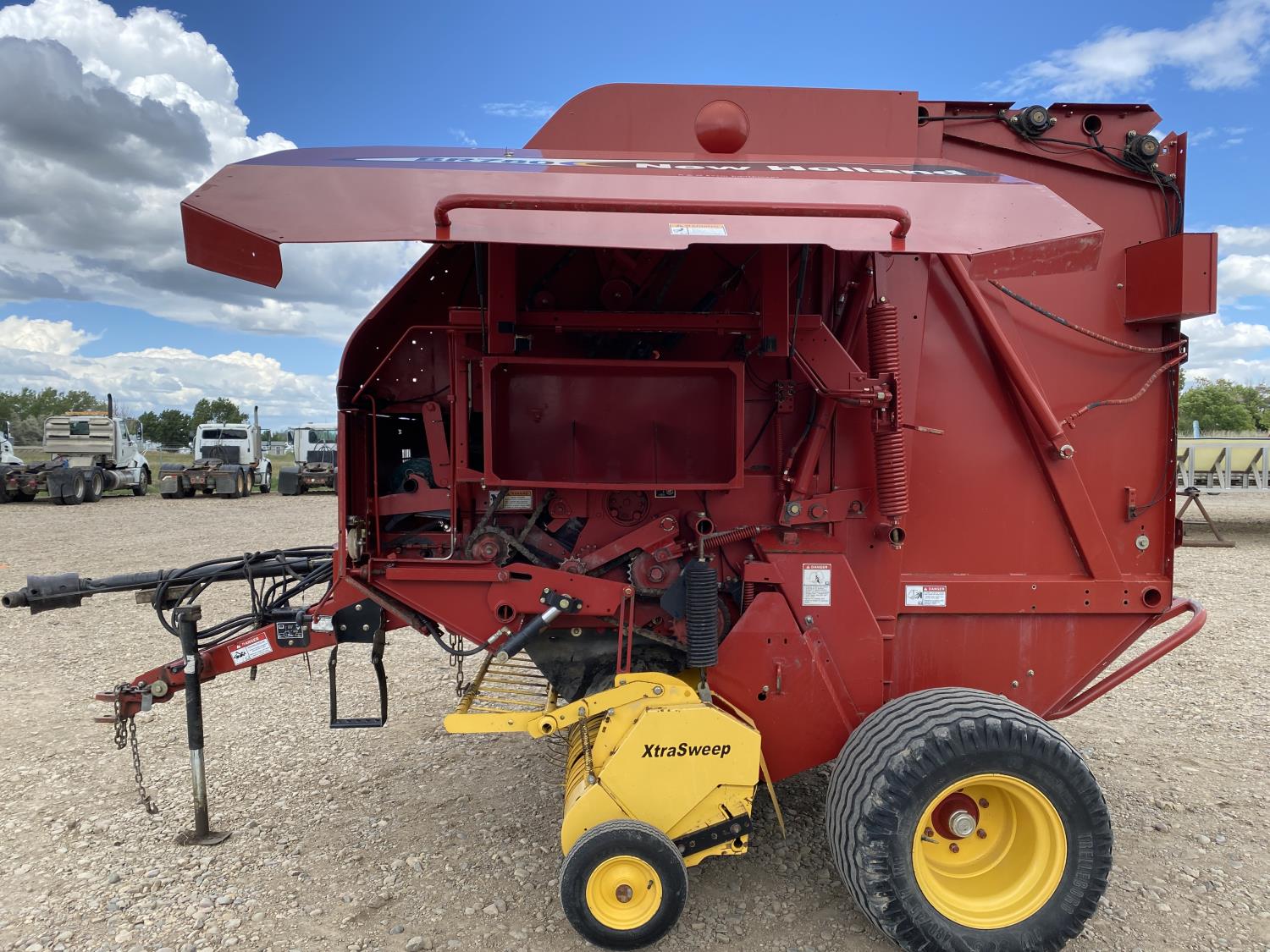 1000 PTO, XtraSweep, 78 inch pickup, hydraulic lift, (2) gauge wheels, 5x6 ft bale size, twine tie or net wrap, monitor, kicker, hydraulic tension, 20,000 bale count, 480/45-17 tires