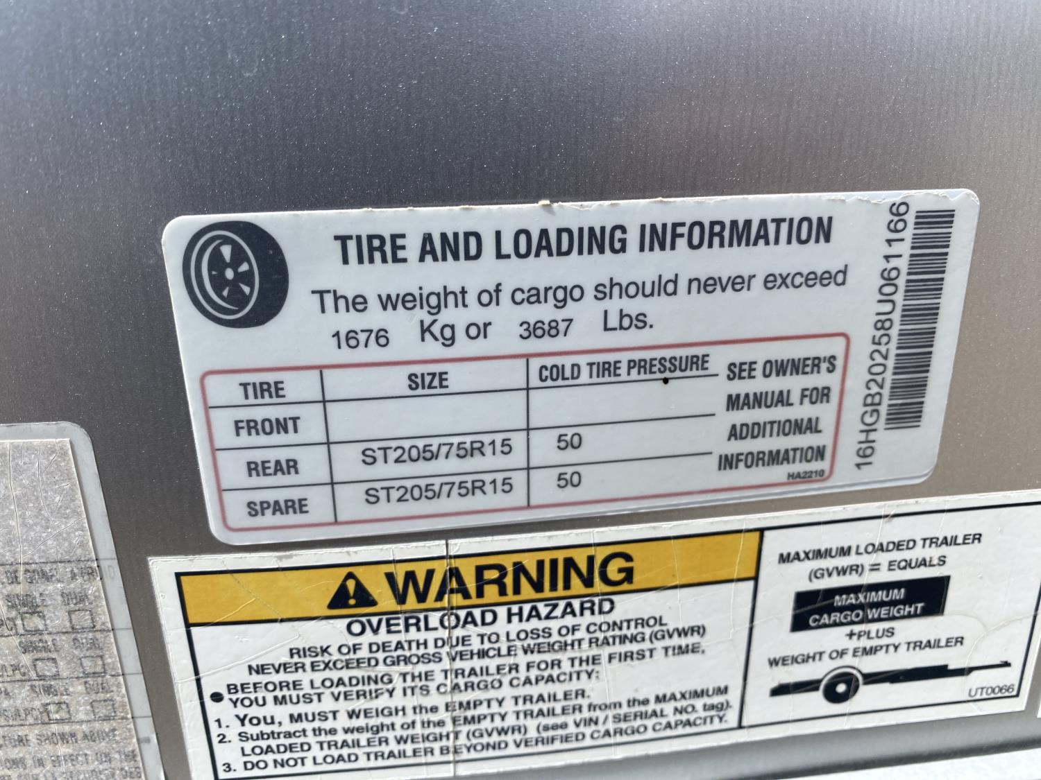 96 inch interior width, 76 inch interior height, ball hitch, side door, fold down door, electric brakes, torsion suspension, 3500 lb axles, 205/75R15 tires