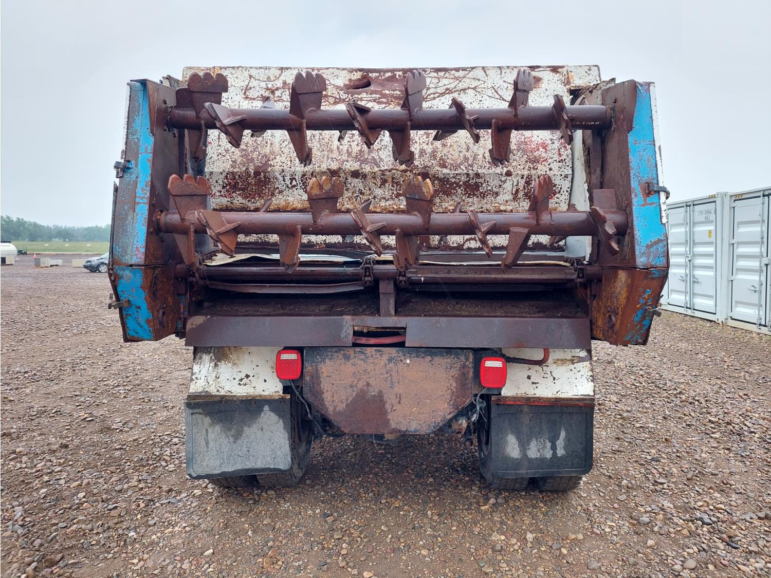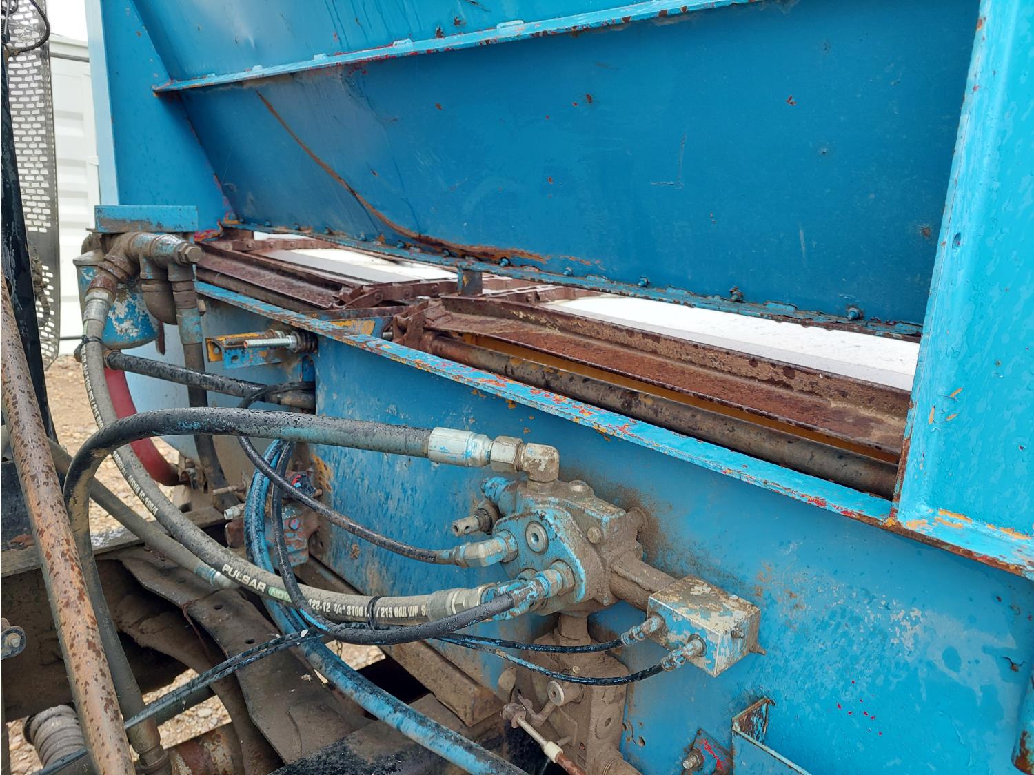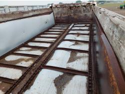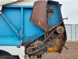 Cummins 8.3 L 6 cylinder engine, engine block heater, Allison automatic transmission, A/C, cruise control, air ride driver seat, 18 ft L box, 82 inch W x 38 inch T side walls, poly lined floor, double floor chain unload, double horizontal beaters, Tuf Trac rubber block suspension, 14,500 lb front axle, 40,000 lb rear axles, differential lock, 238 inch WB, Muncie PTO, 315/80R22.5 front tires, 11R22.5 rear tires