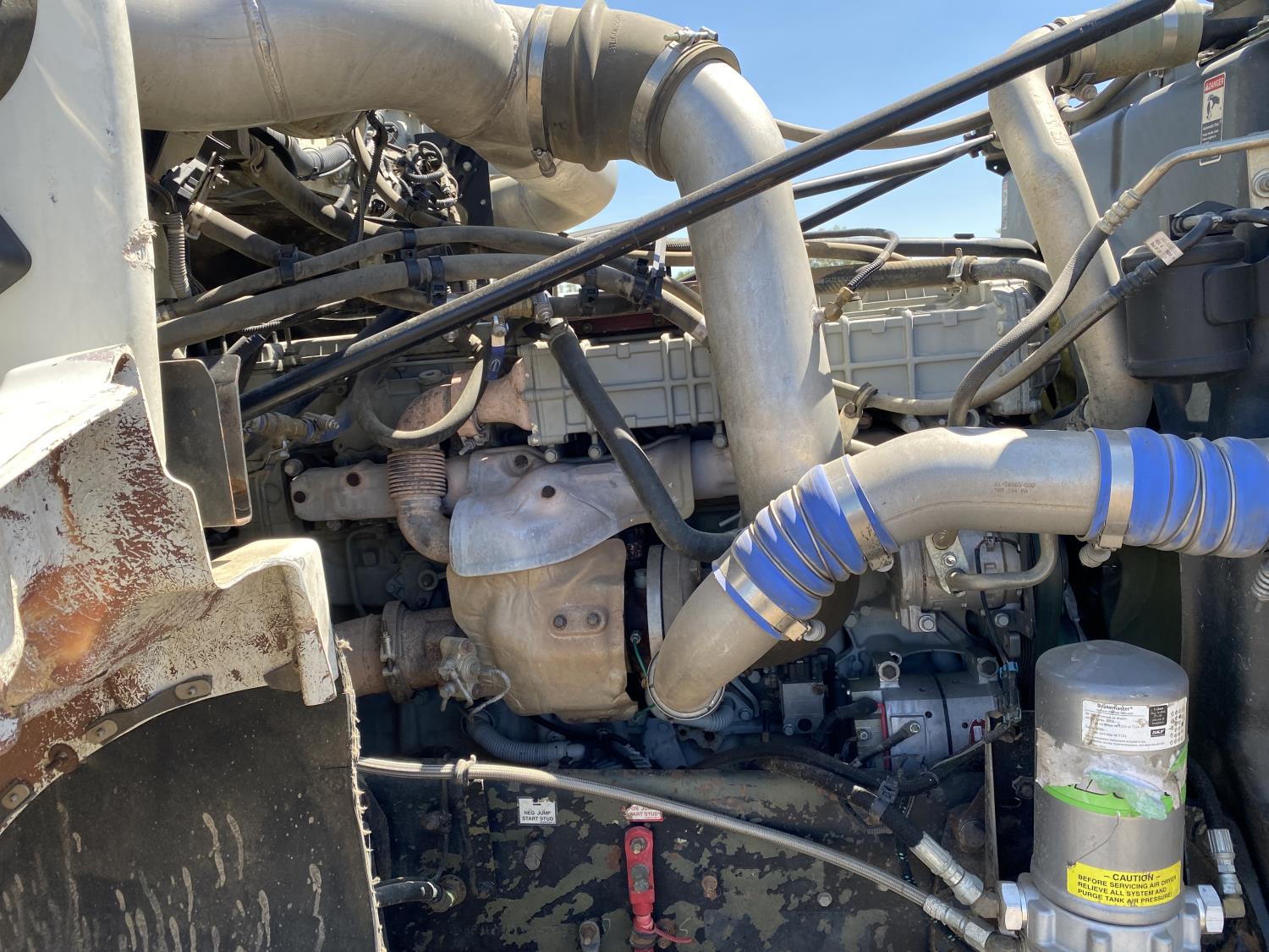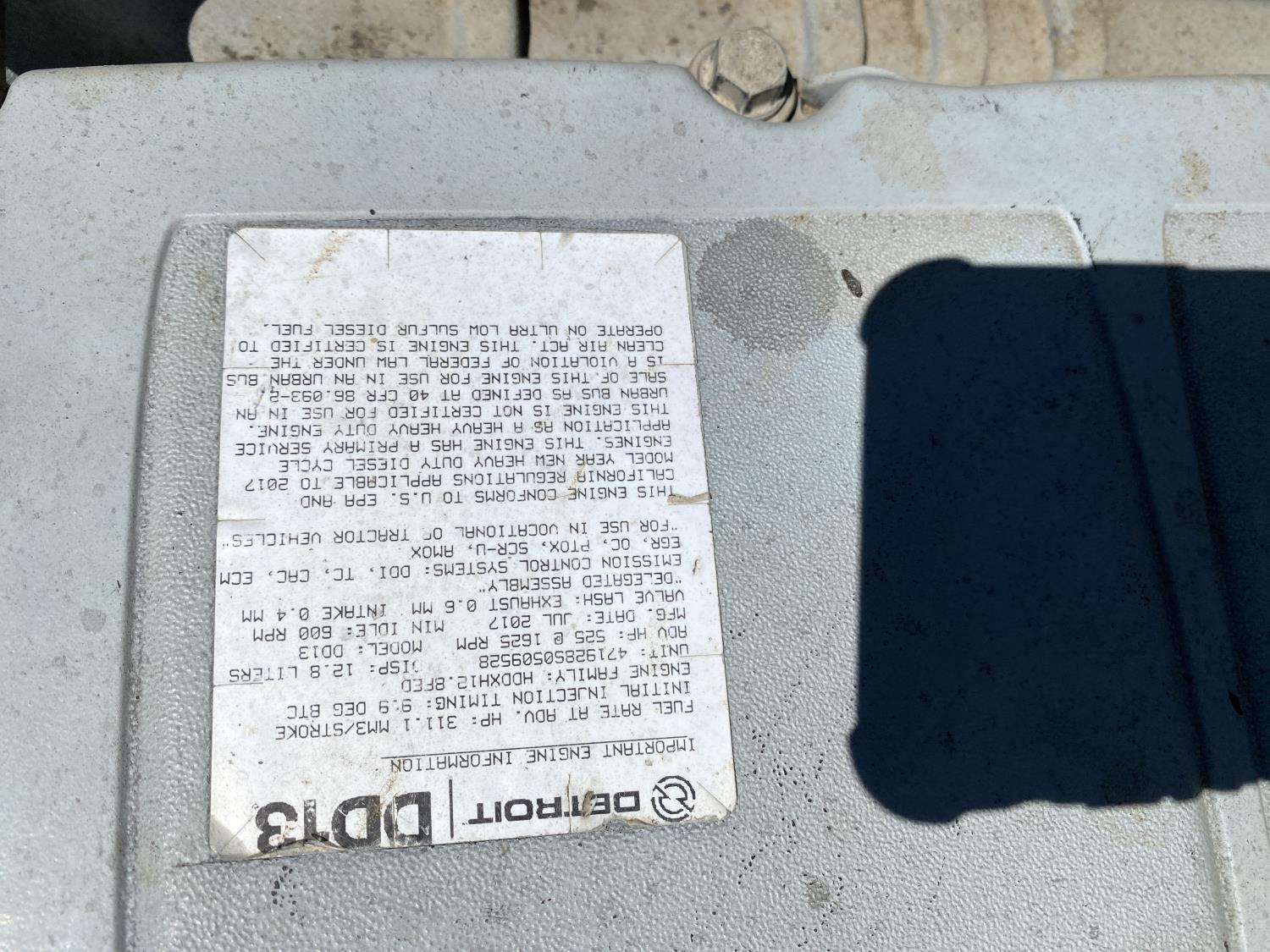 Detroit DD13 12.8 L 6 cylinder 525 HP engine, DEF deleted, Allison automatic transmission, A/C, cruise control, air ride driver seat, air ride cab, PTO pump, Airliner air ride suspension, 16,000 lb front axle, 69,000 lb rear axles, full lockers, 5.38 ratio, 266 inch WB, 312 inch from back of cab to end of frame, 385/65R22.5 front tires, 11R22.5 rear tires