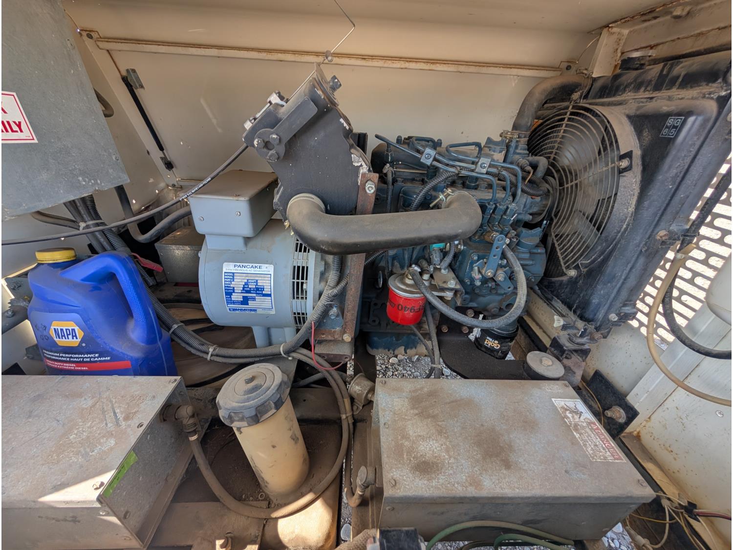 Kubota 1.1L diesel engine, 120/240 volt, single phase, 205/75R15 tires, pintle hitch