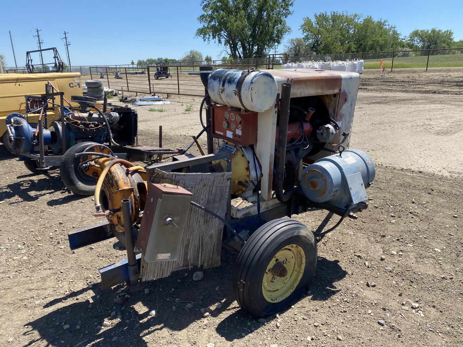 6 inch inlet, 4 inch outlet, International V8 gas engine, Lima 230/460V 3PH electric motor, 7.8-15 tires