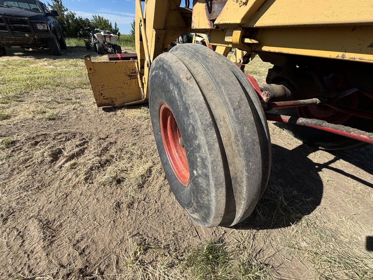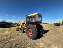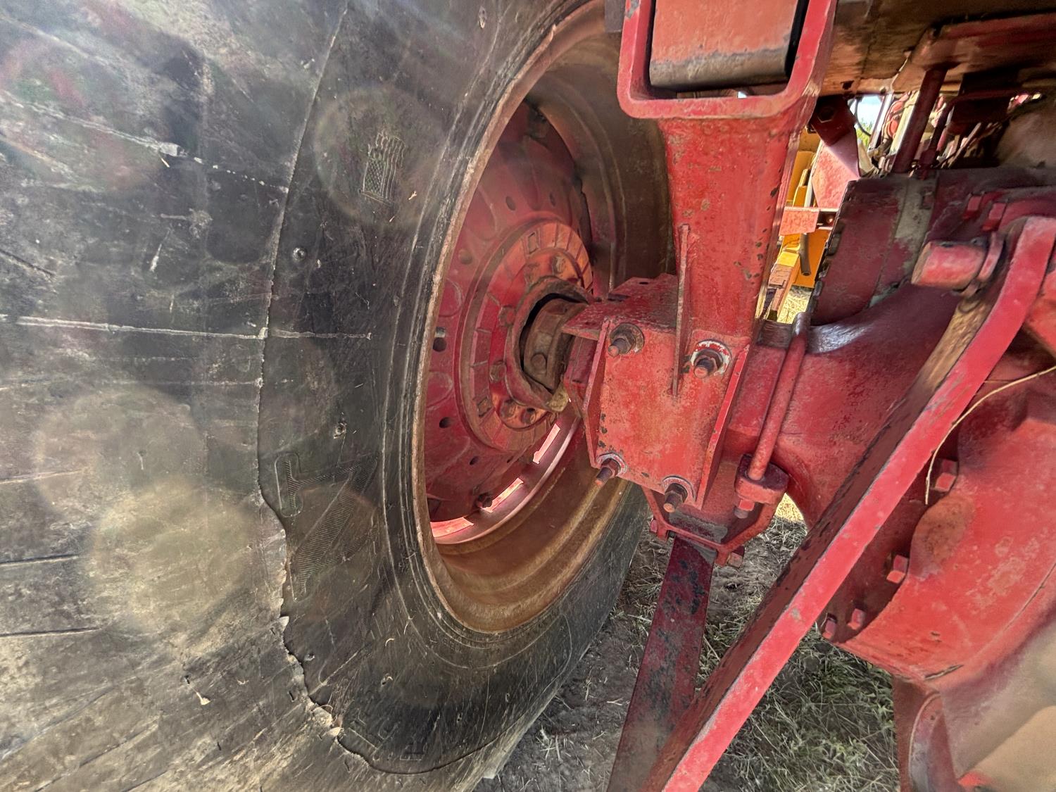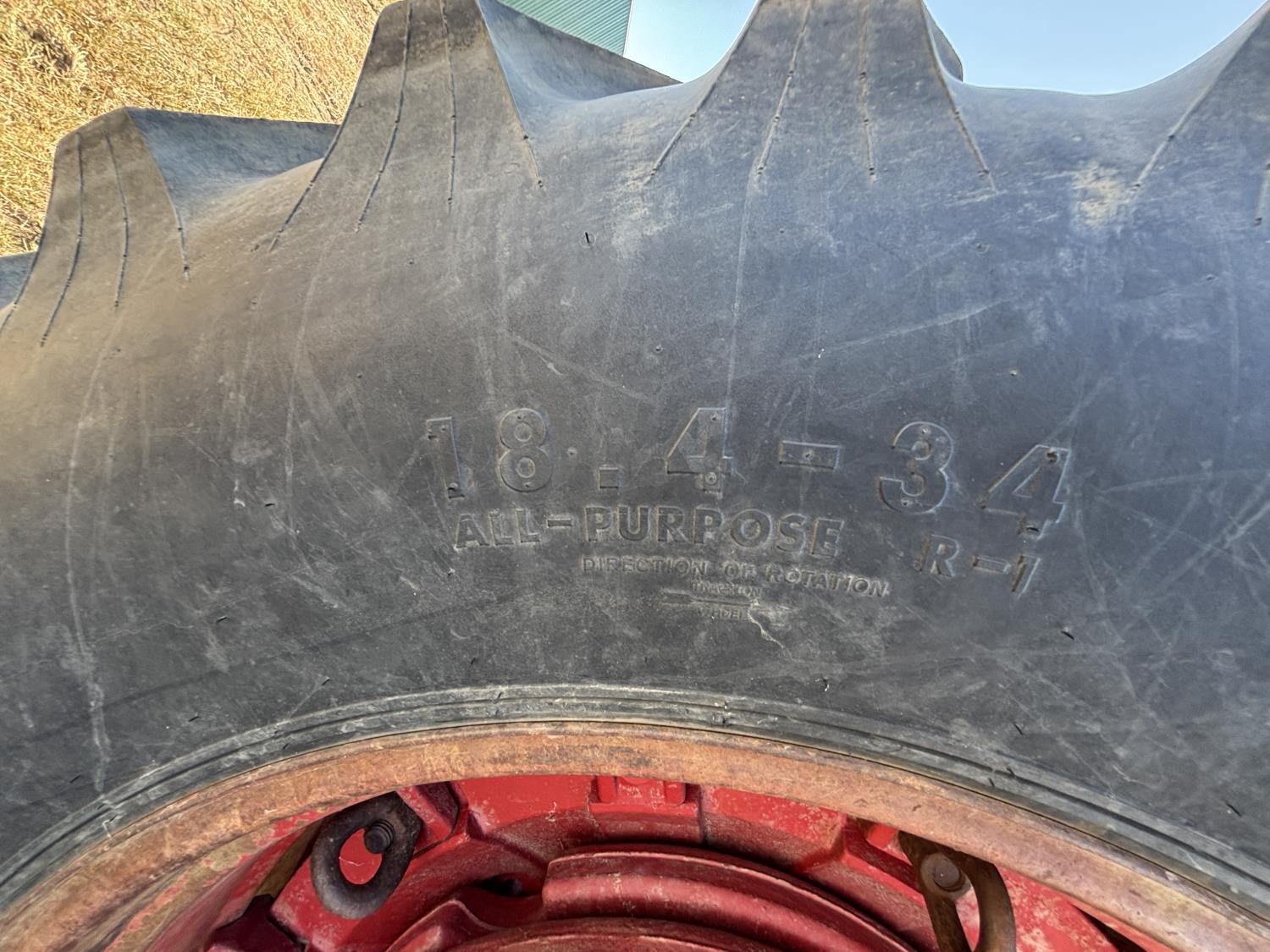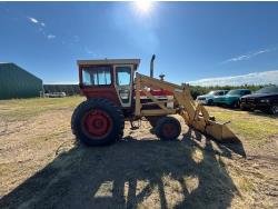 Ezee-On loader, 96 inch bucket, 34 inch bale forks,International 5.9 L 6 cylinder 105 HP, diesel engine, 94 PTO HP, 8 speed manual transmission, cab, 540/1000 PTO, 2 rear hydraulic outlets, rear wheel weights, 10.00-16 front tires, 18.4-34 rear tires