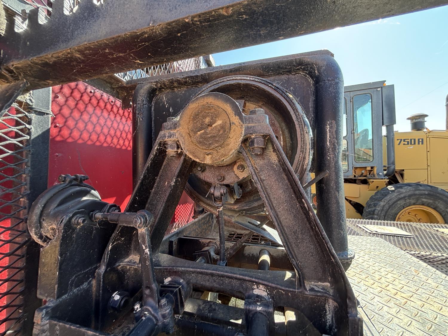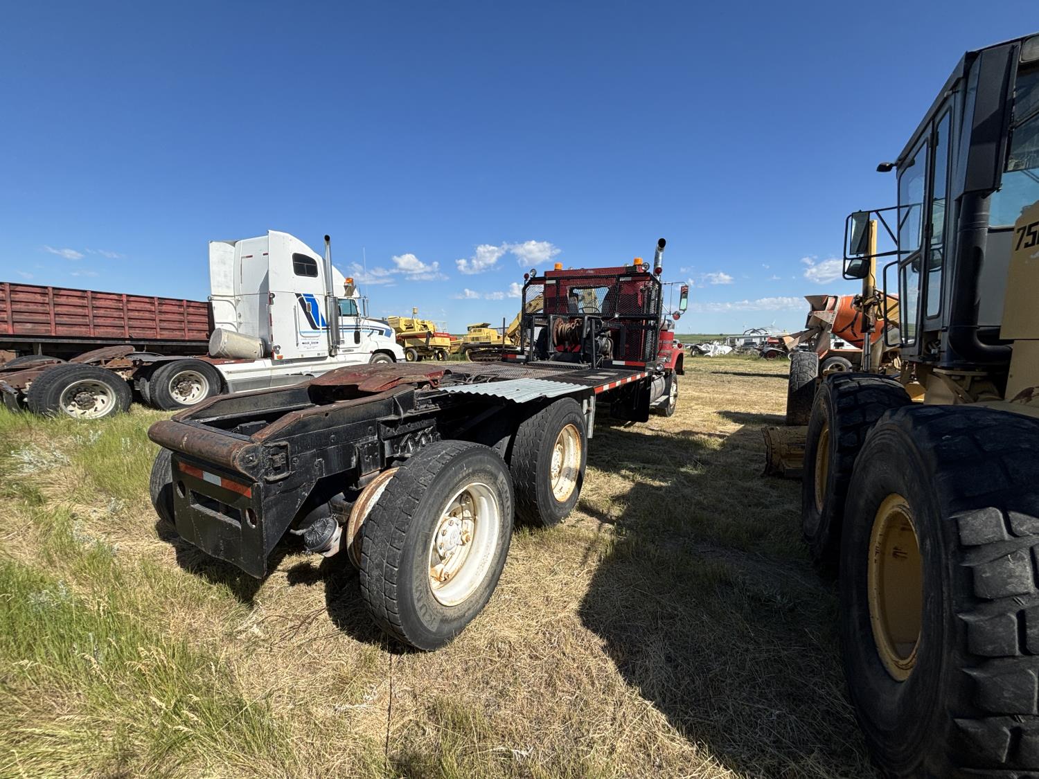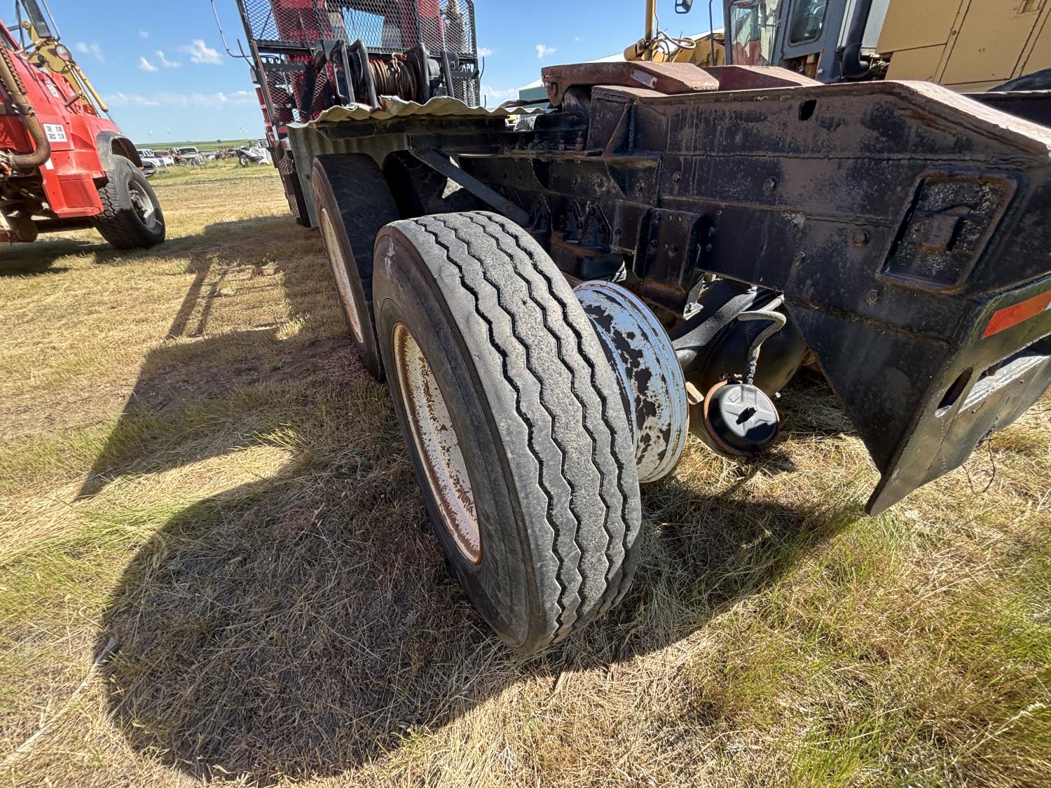 Cummins 6 cylinder diesel engine, manual transmission, 96 inch x 84 inch deck, beacons, chain holders, Tulsa winch, rubber block suspension, 255 inch WB, 11R22.5 front tires, 11R24.5 rear tires
