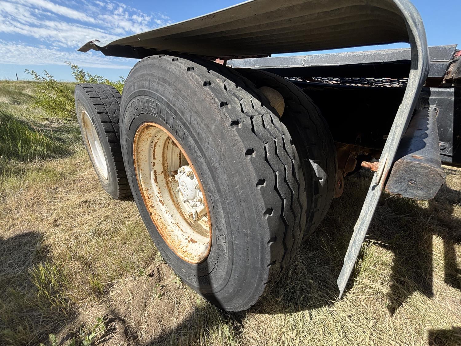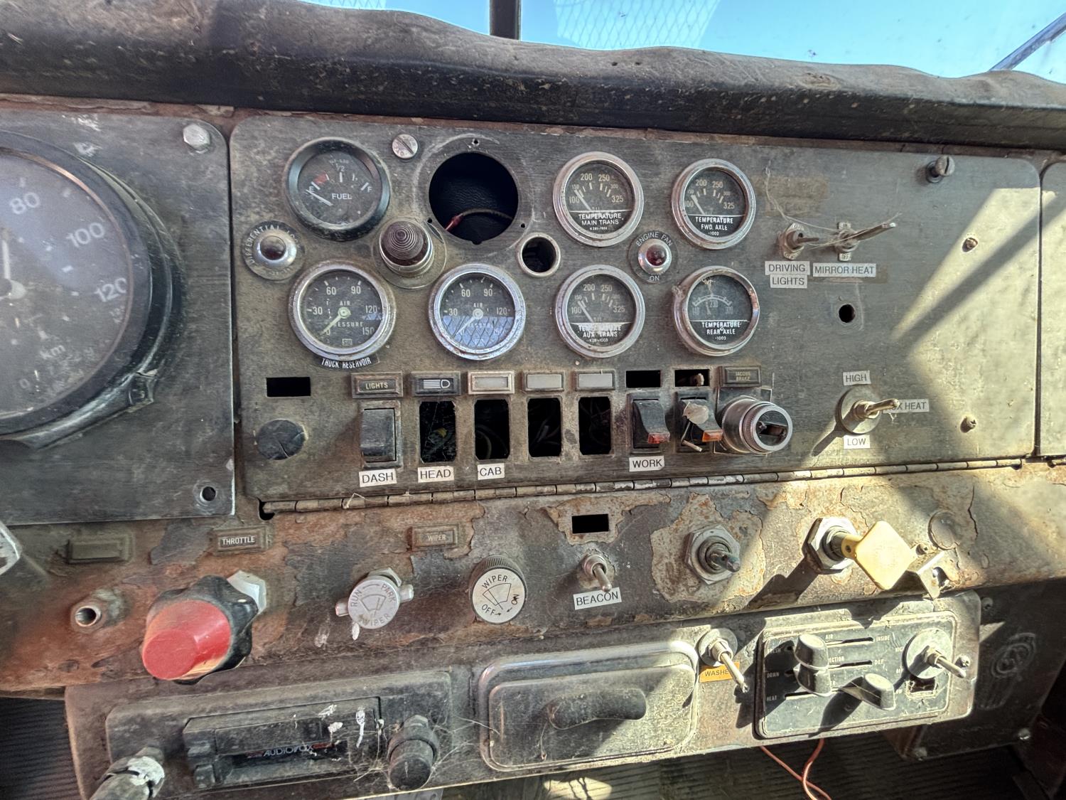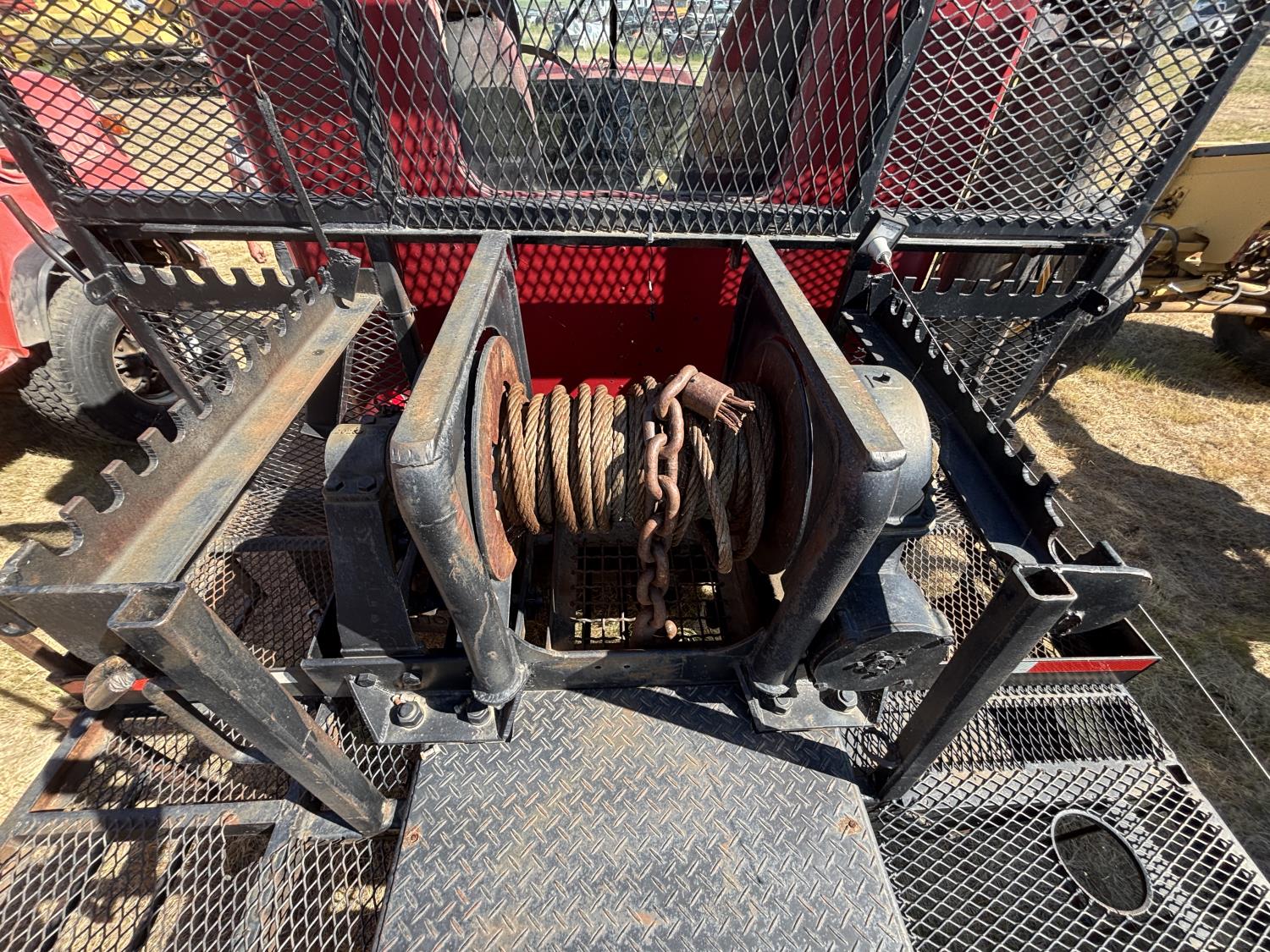 Cummins 6 cylinder diesel engine, manual transmission, 96 inch x 84 inch deck, beacons, chain holders, Tulsa winch, rubber block suspension, 255 inch WB, 11R22.5 front tires, 11R24.5 rear tires