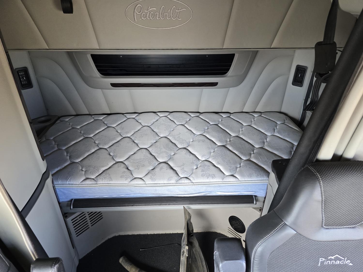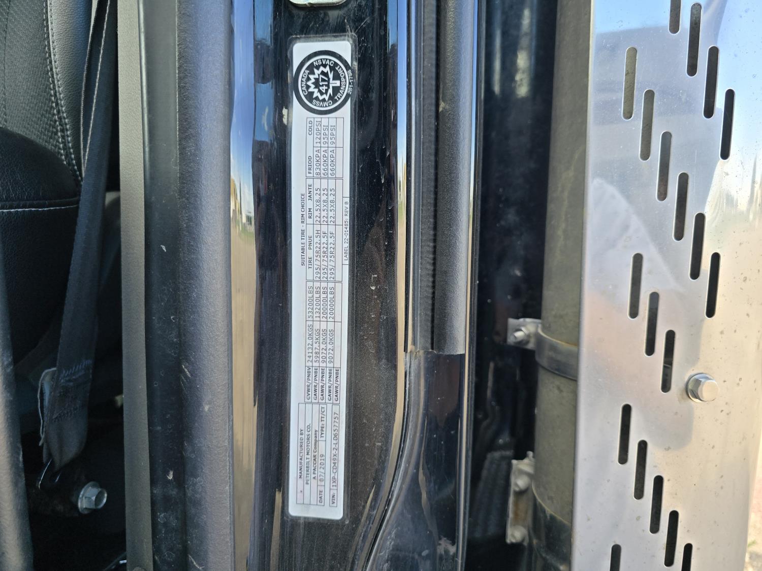 Cummins X15 15 L 6 cylinder 500 HP engine, Webasto engine heater, engine block heater, Eaton Fuller 18 speed transmission, Espar cab heater, mid rise 62 inch sleeper, fridge, A/C, cruise control, leather interior, air ride seats, CB radio, front air assist suspension, Paccar air ride suspension, 13,200 lb front axle, 40,000 lb rear axles, full lockers, 245 inch WB, 11R22.5 tires