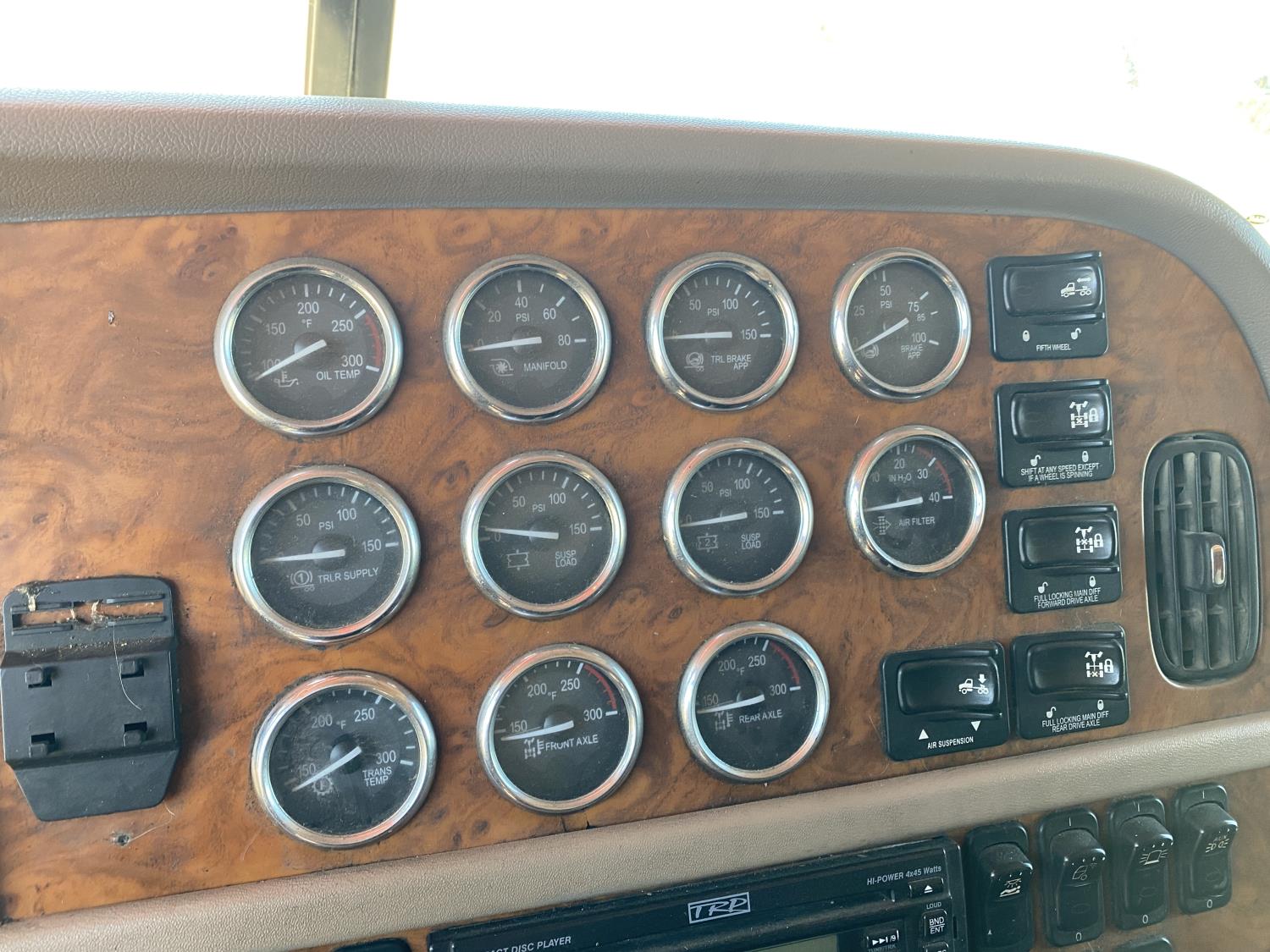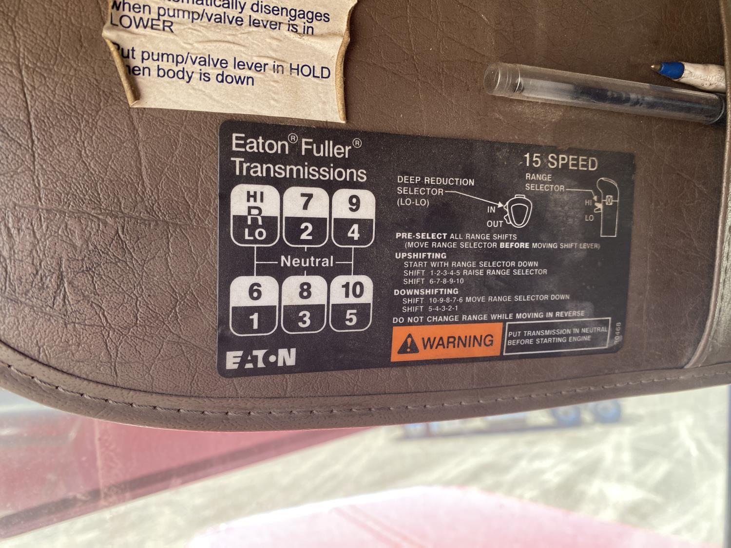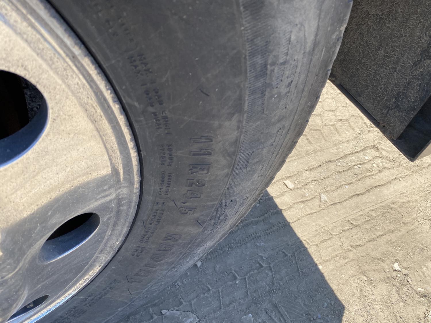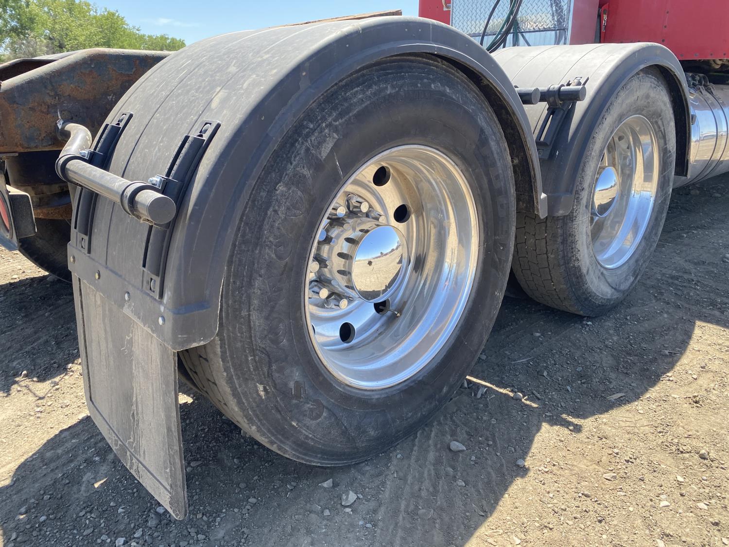 Caterpillar C15 6 cylinder engine, engine block heater, Eaton Fuller 18 speed manual transmission, flat top 60 inch sleeper, A/C, cruise control, air ride seats, hydraulic wet kit, air ride cab, PTO pump, Peterbilt air ride suspension, 14,320 lb front axle, 46,000 lb rear axles, full lockers, 242 inch WB, all aluminum wheels, 11R24.5 tires