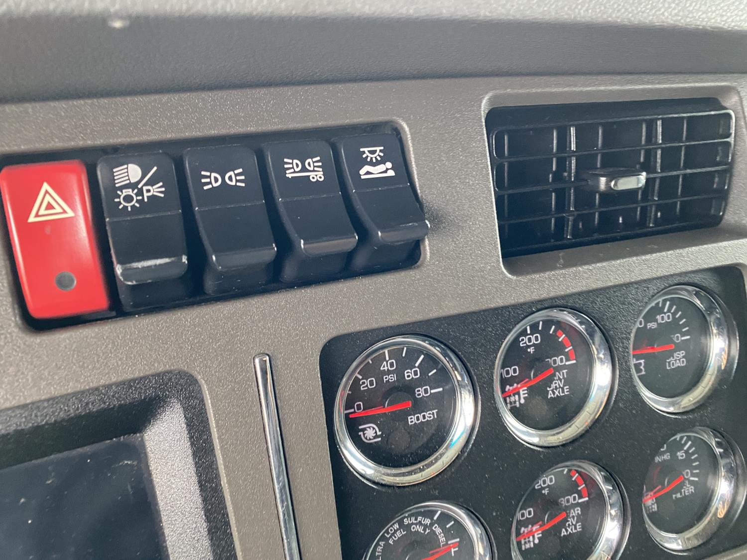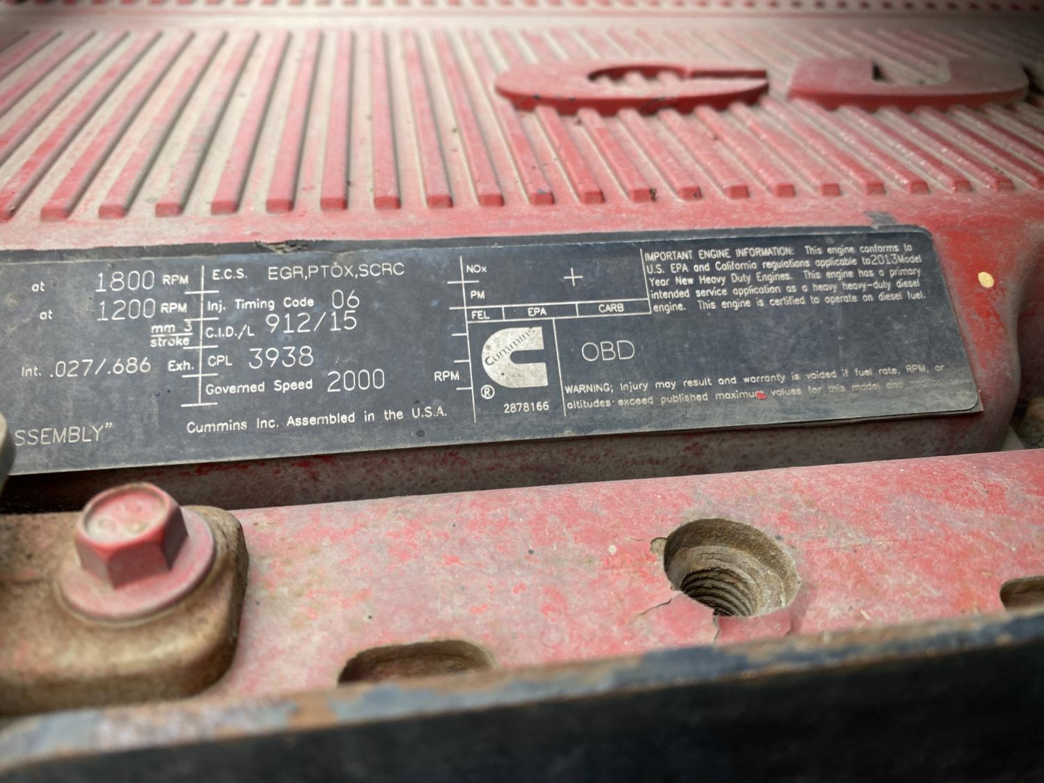 Cummins ISX15 15 L 6 cylinder 500 HP engine, engine brake, engine block heater, Eaton Fuller 18 speed manual transmission, high rise 66 inch sleeper, fridge, bunk beds, A/C, cruise control, air ride seats, air ride cab, Paccar air ride suspension, 13,200 lb front axle, 40,000 lb rear axles, full lockers, 238 inch WB, all aluminum wheels, 11R22.5 tires