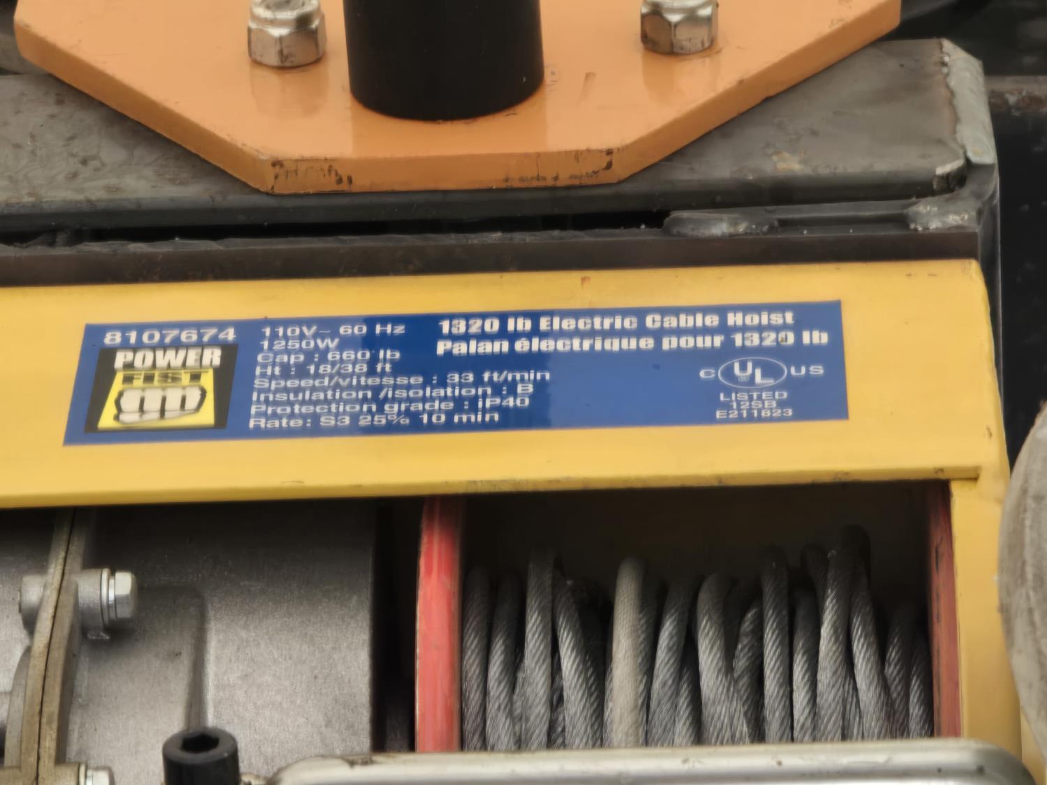 11 ft 3 inch T x 5 ft W, 1-1/2 ton hoist