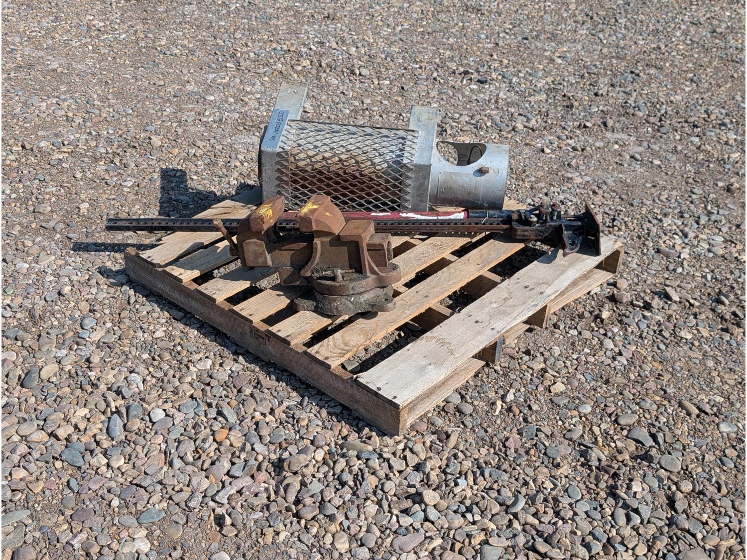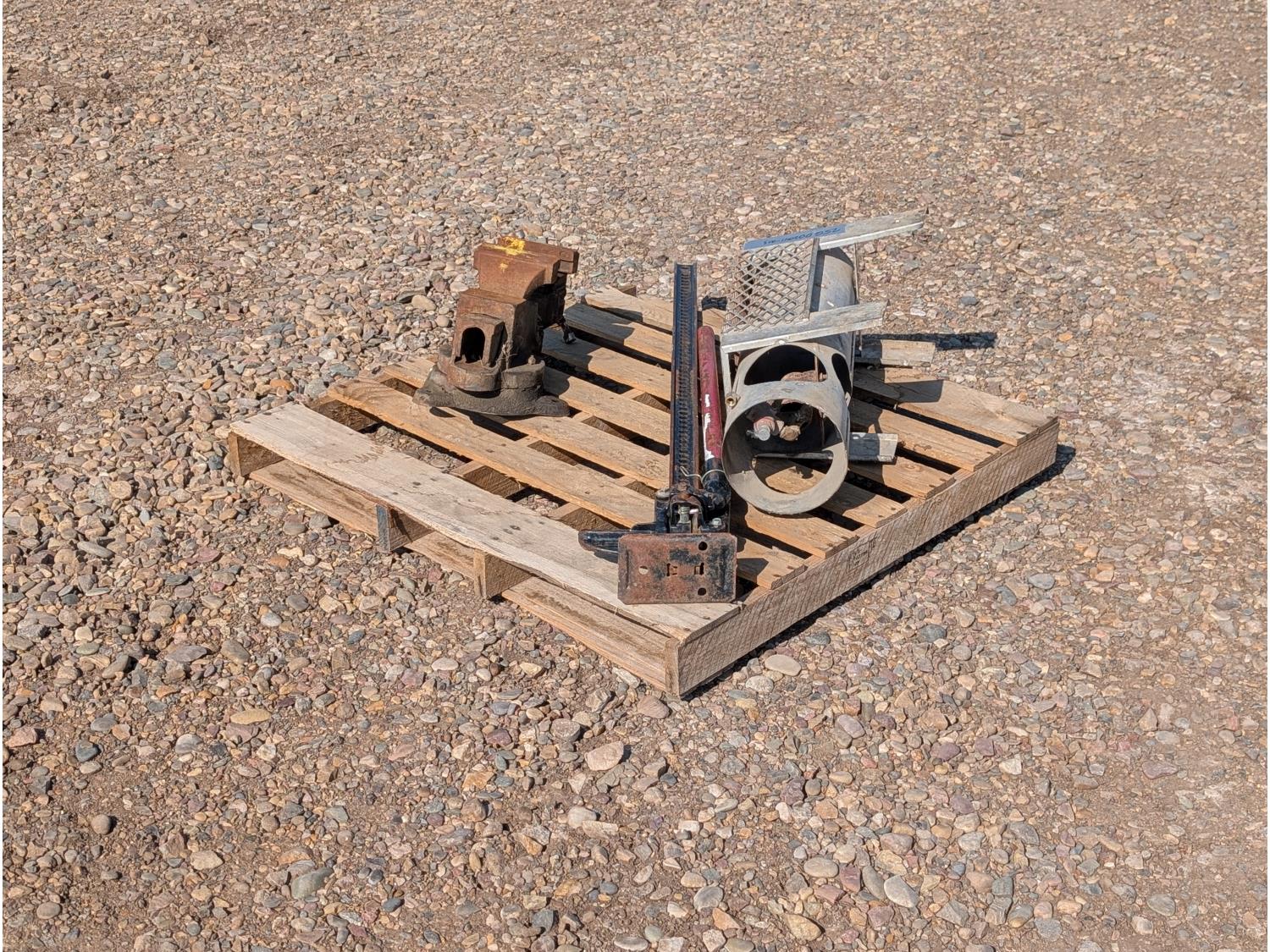 1239 140,000 But Propane Space Heater w/ 6 Inch Bench Vise & 58 Inch Hi-Lift Jack