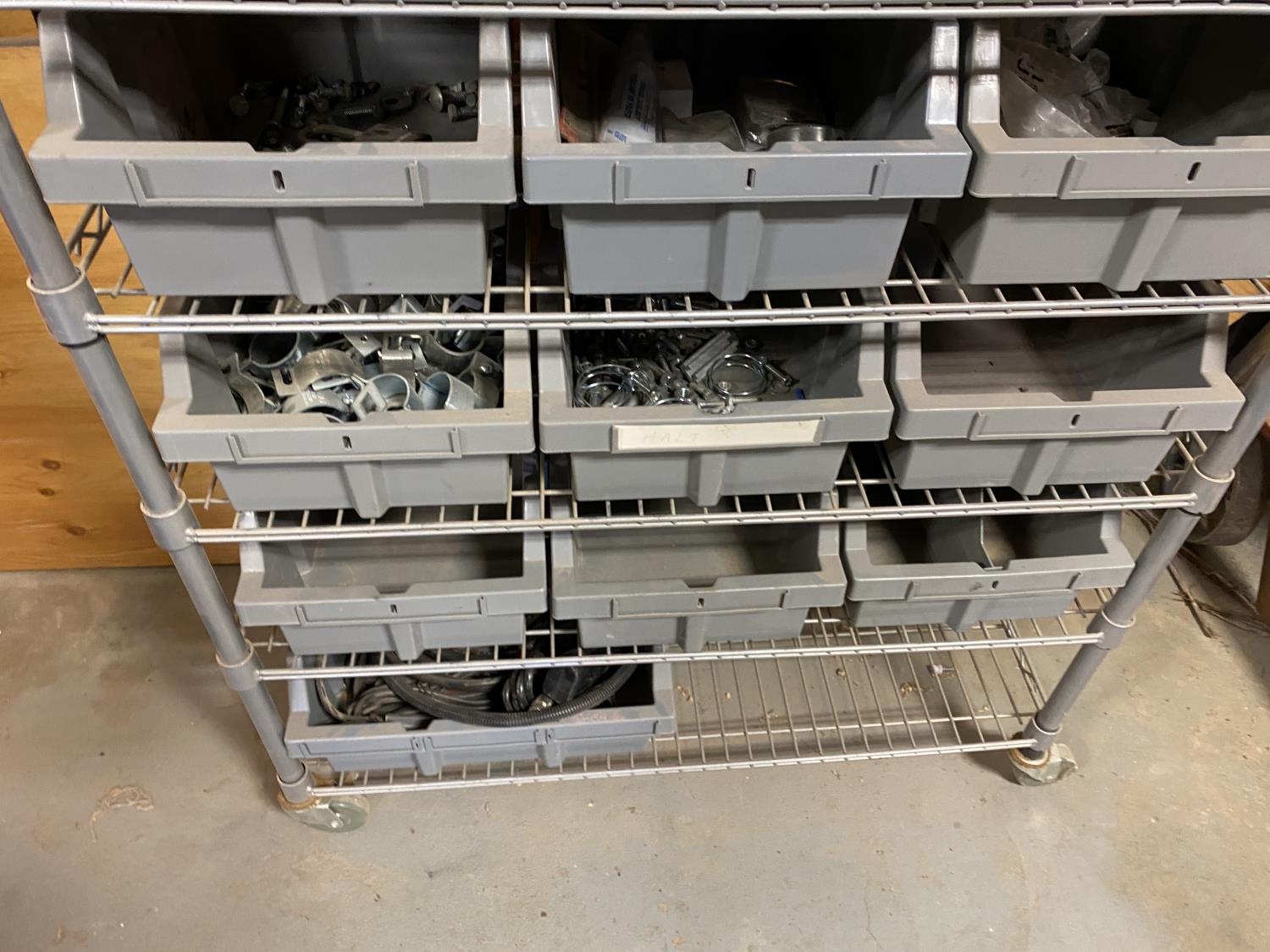 1335 36 Inch Metal Shelf w/ Castors & Storage Bins