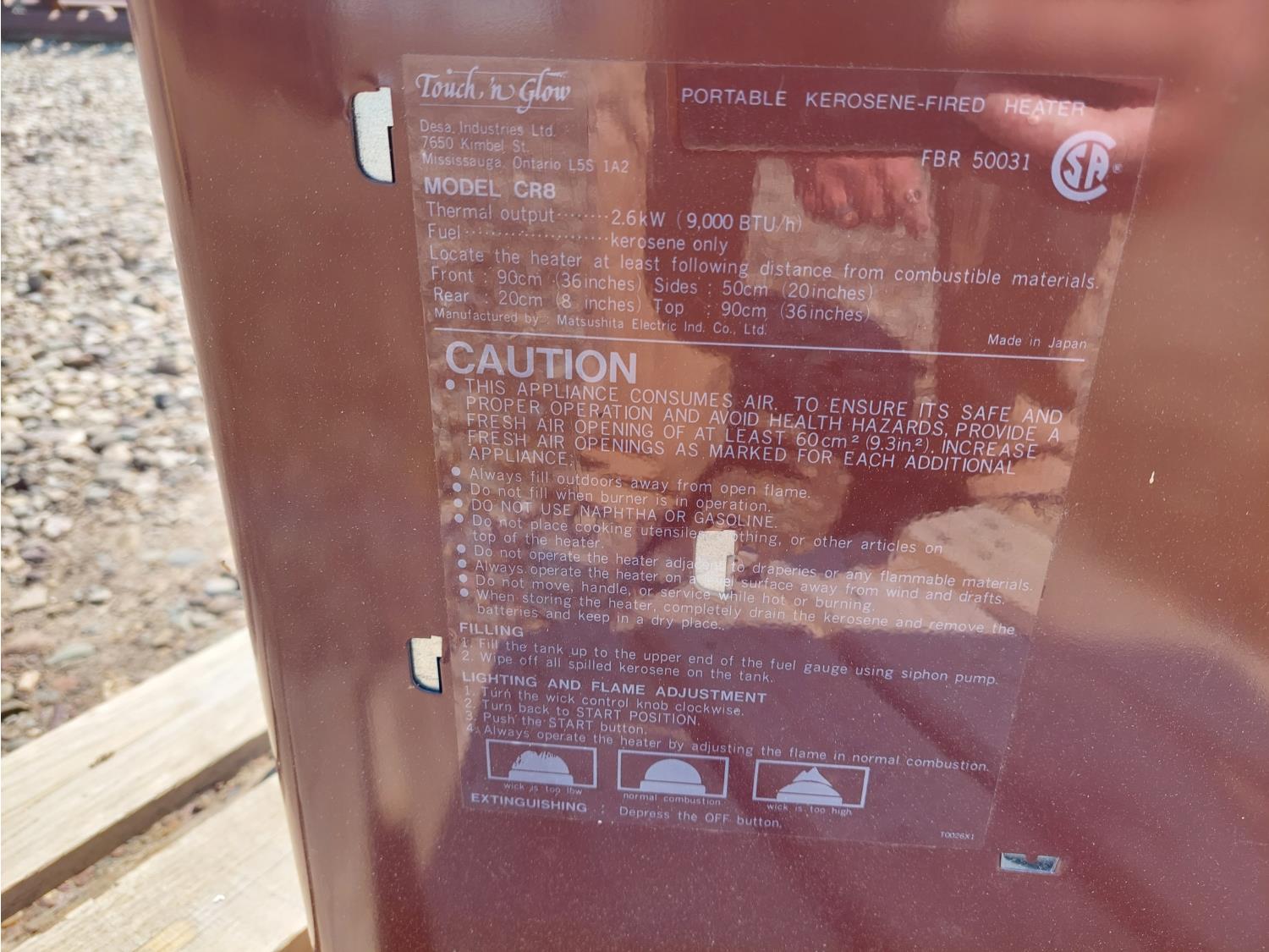 1091 Touch n' Glow CR8 9000 BTU Kerosene Heater (Unused)