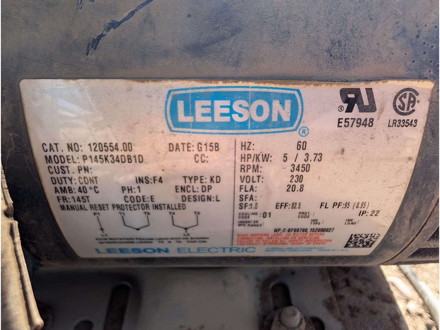 Leeson 5 HP, 230V single phase