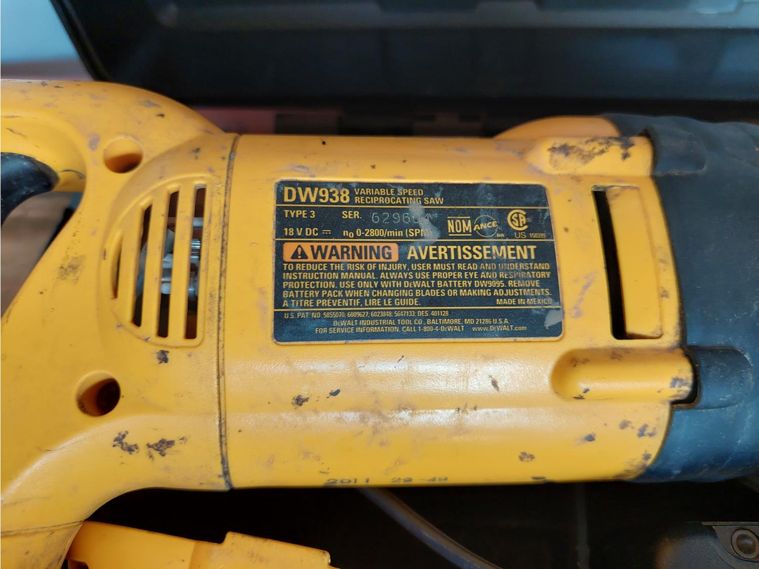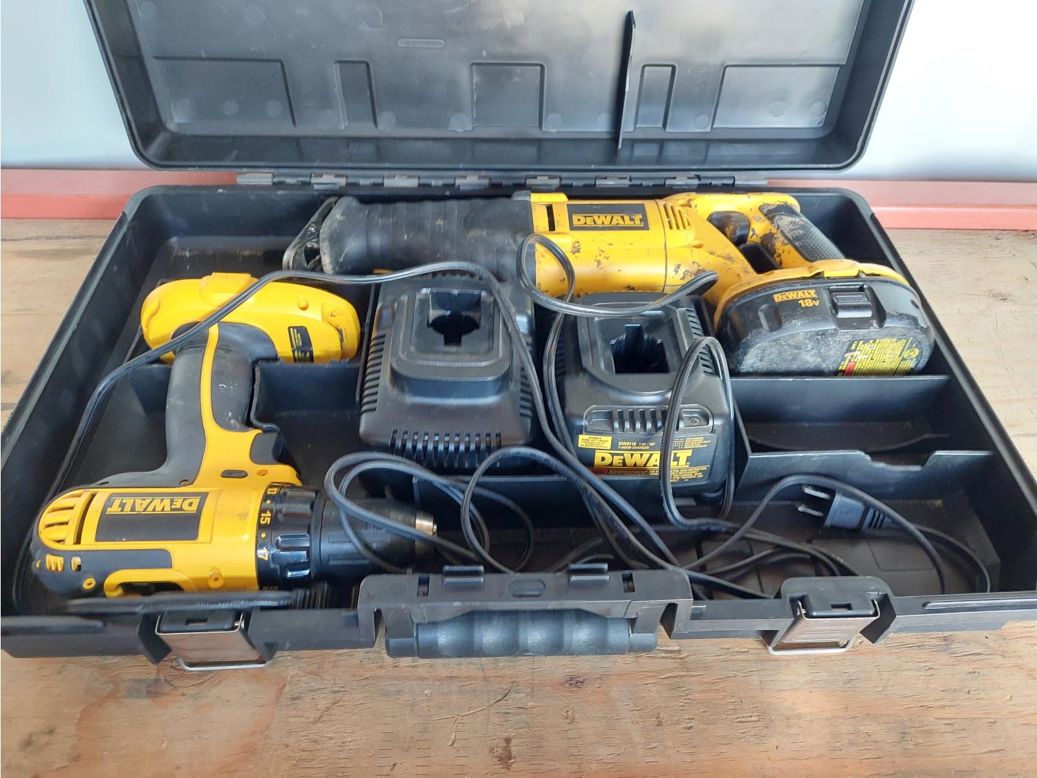 includes DC720-1/2 inch drill, DW938 reciprocating saw, 18V battery and (2) DW9116 chargers