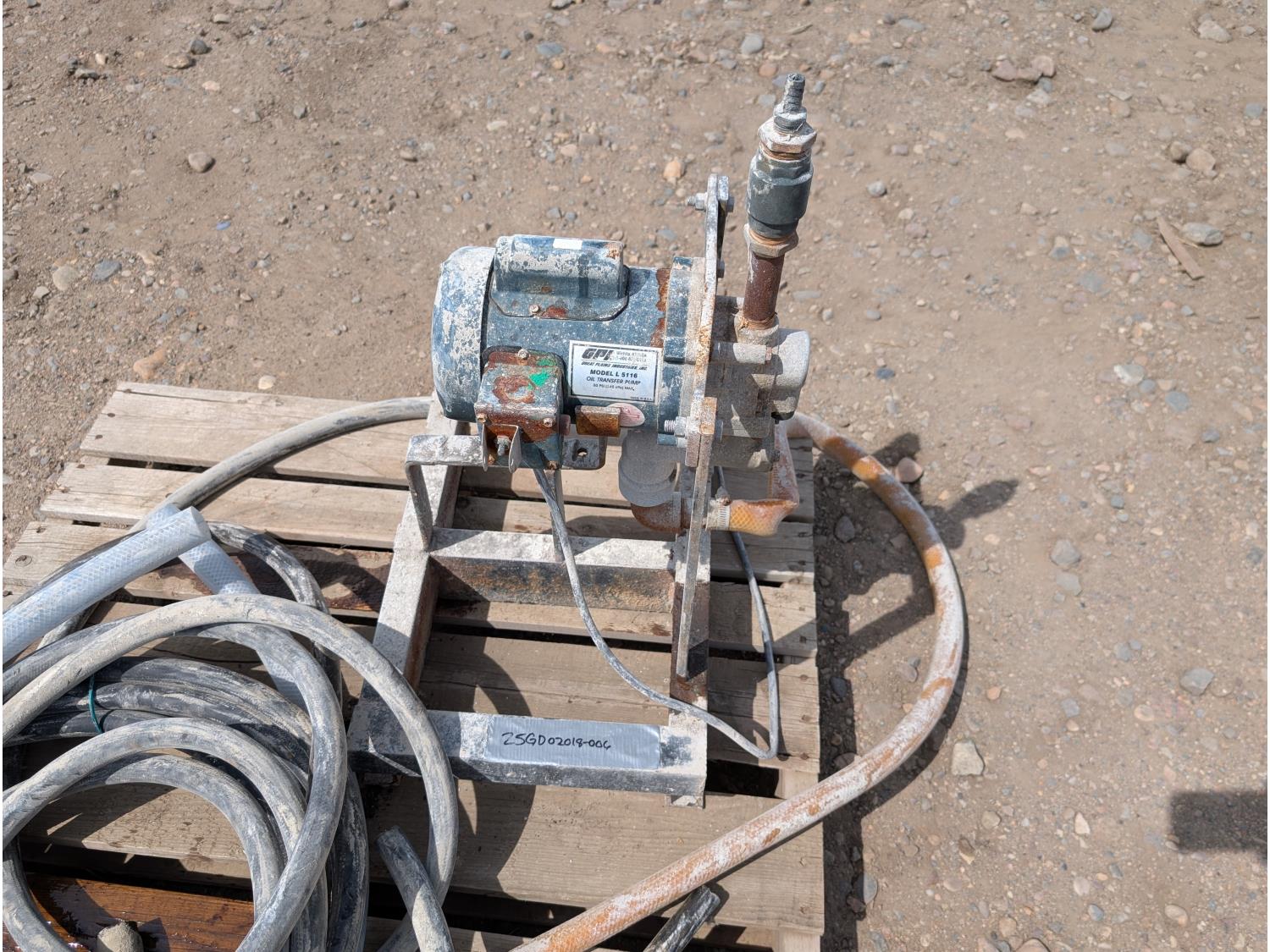1443 GPI L 5116 Fuel Transfer Pump w/ Stand & Misc Hose