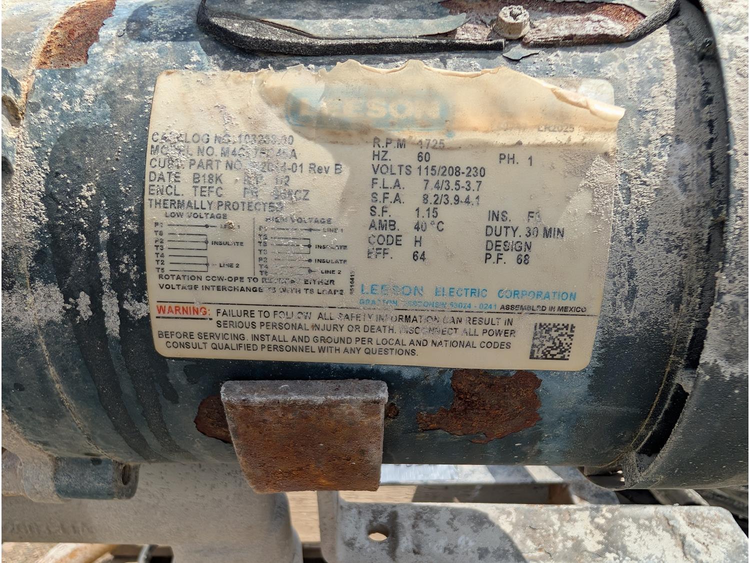 Leeson 1/2 HP electric motor, single phase, 115/208/230V, 50 PSI max