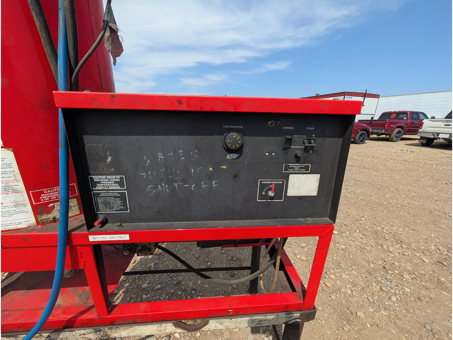 2000 PSI, natural gas burner, 332,000 BTU. 230v, 3 phase.