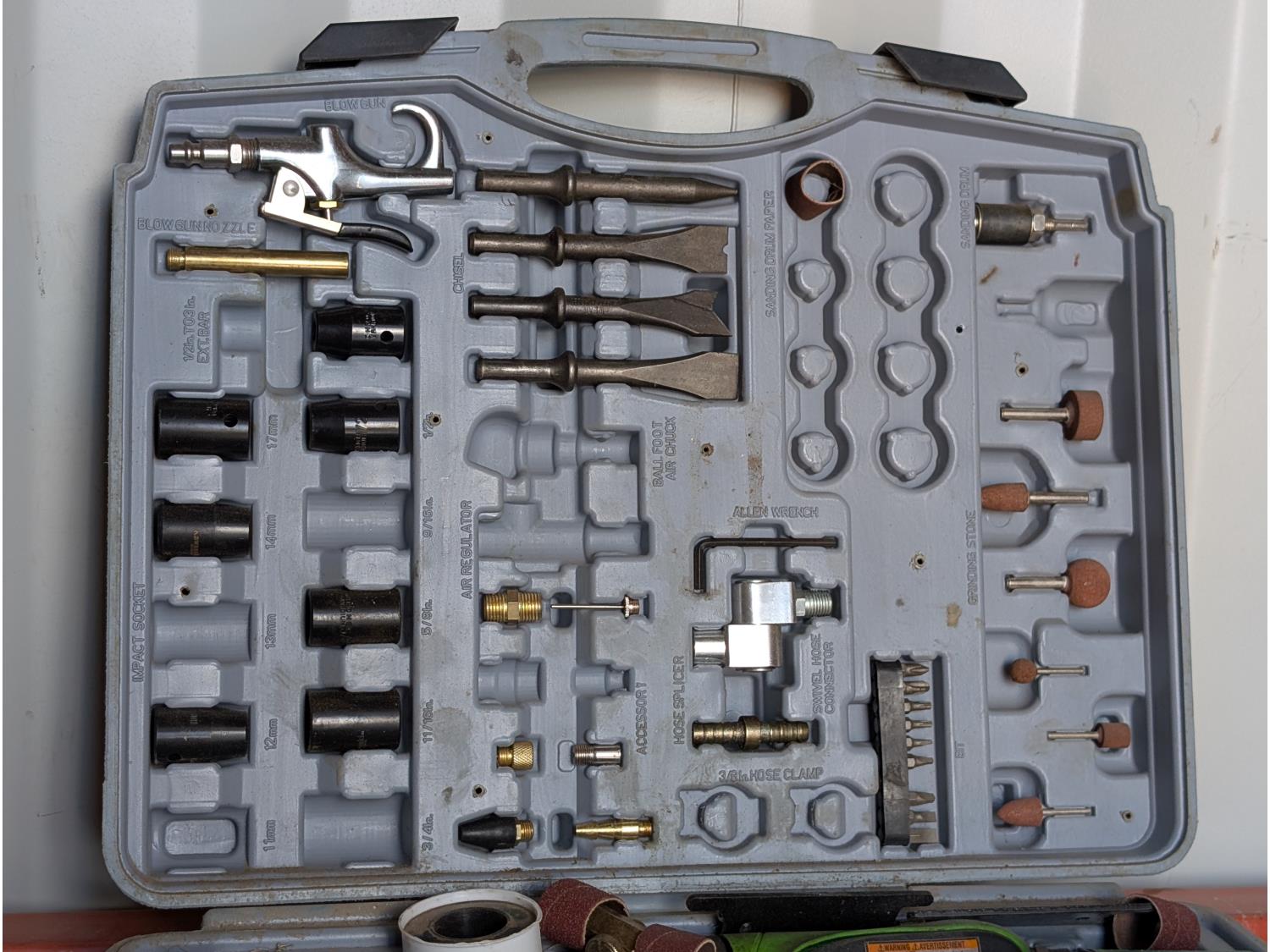 1/2 inch impact wrench, air hammer, 1/4 inch die grinder, 3/8 inch air rachet