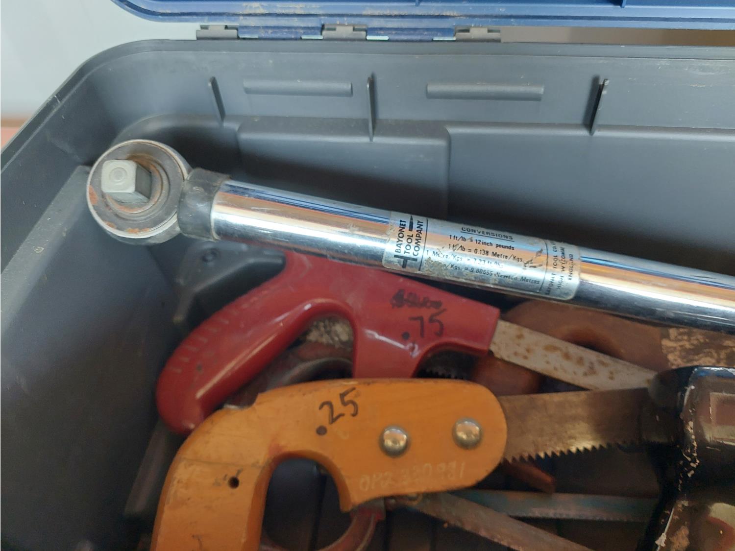 1/2 inch Bayonet torque wrench, hand saws, and miscellaneous sockets