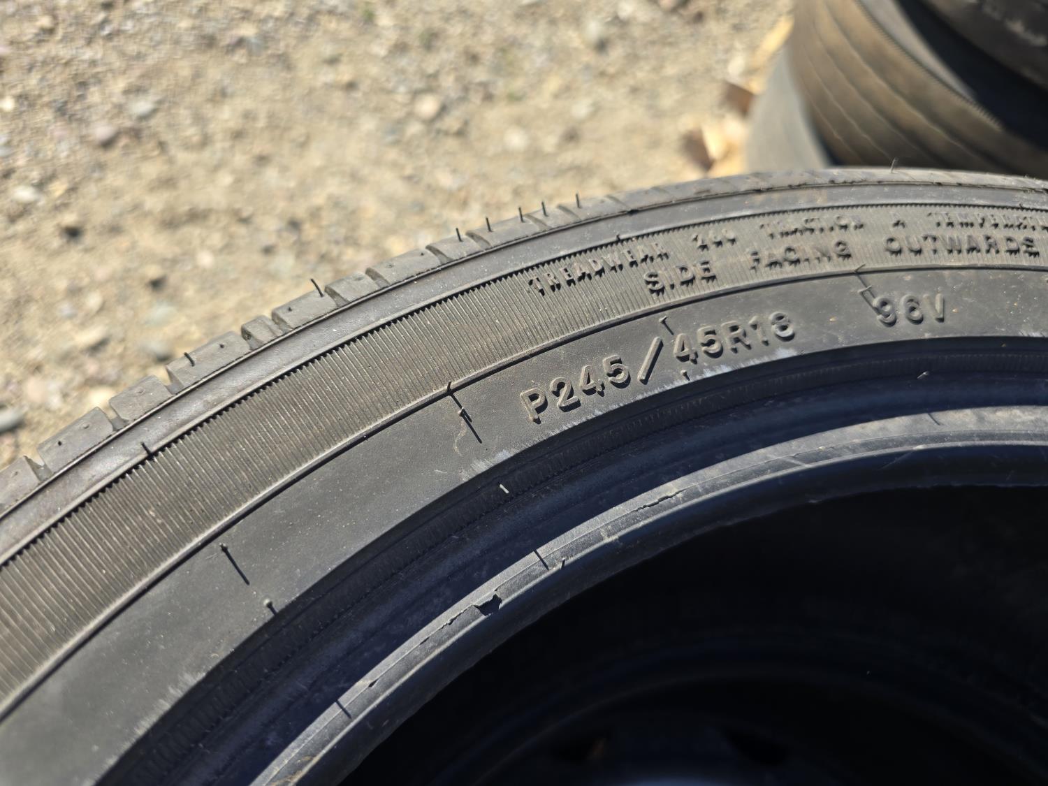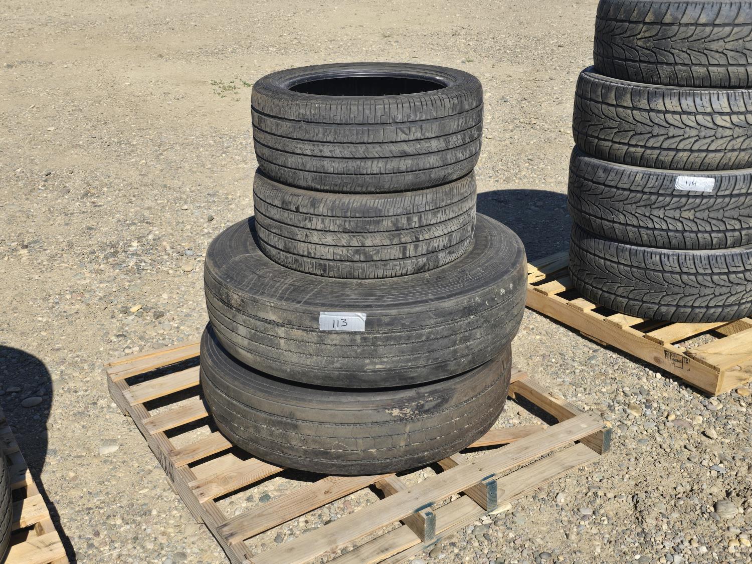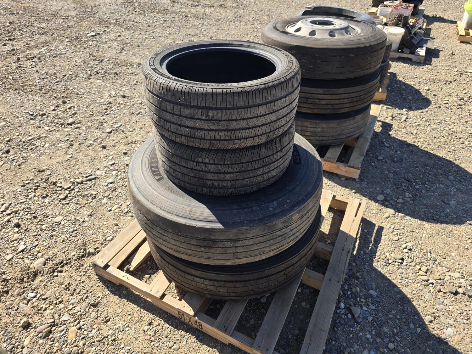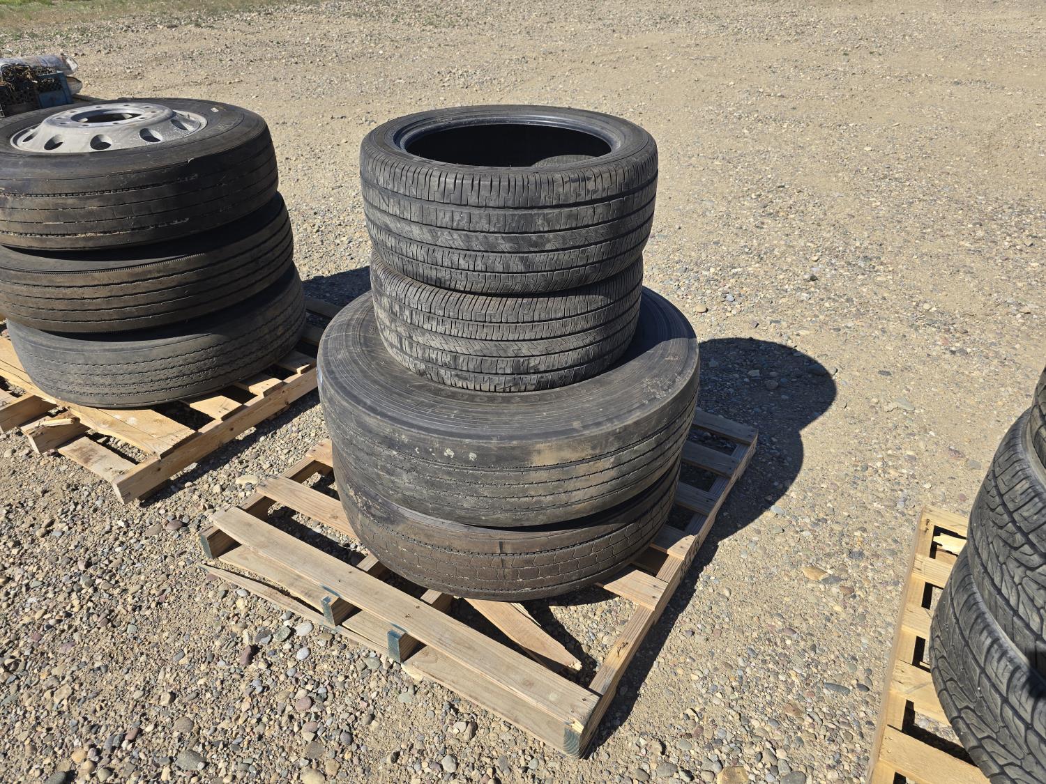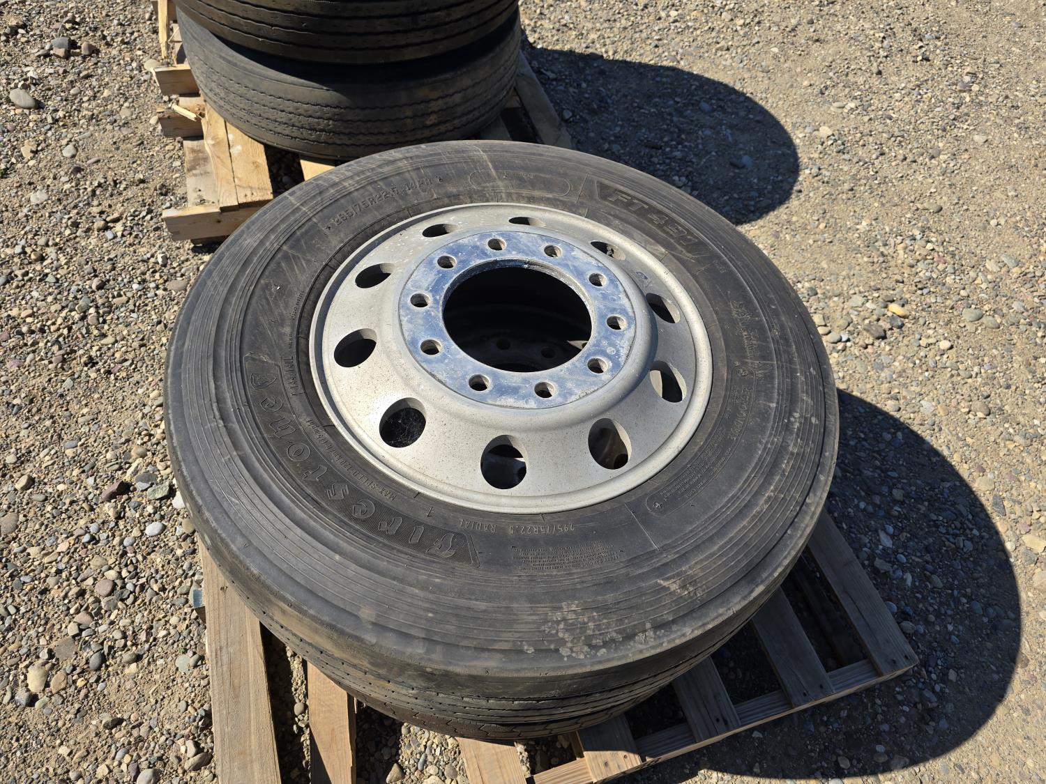 (2) 295/75R22.5 w/ rims, (2) P245/45R18