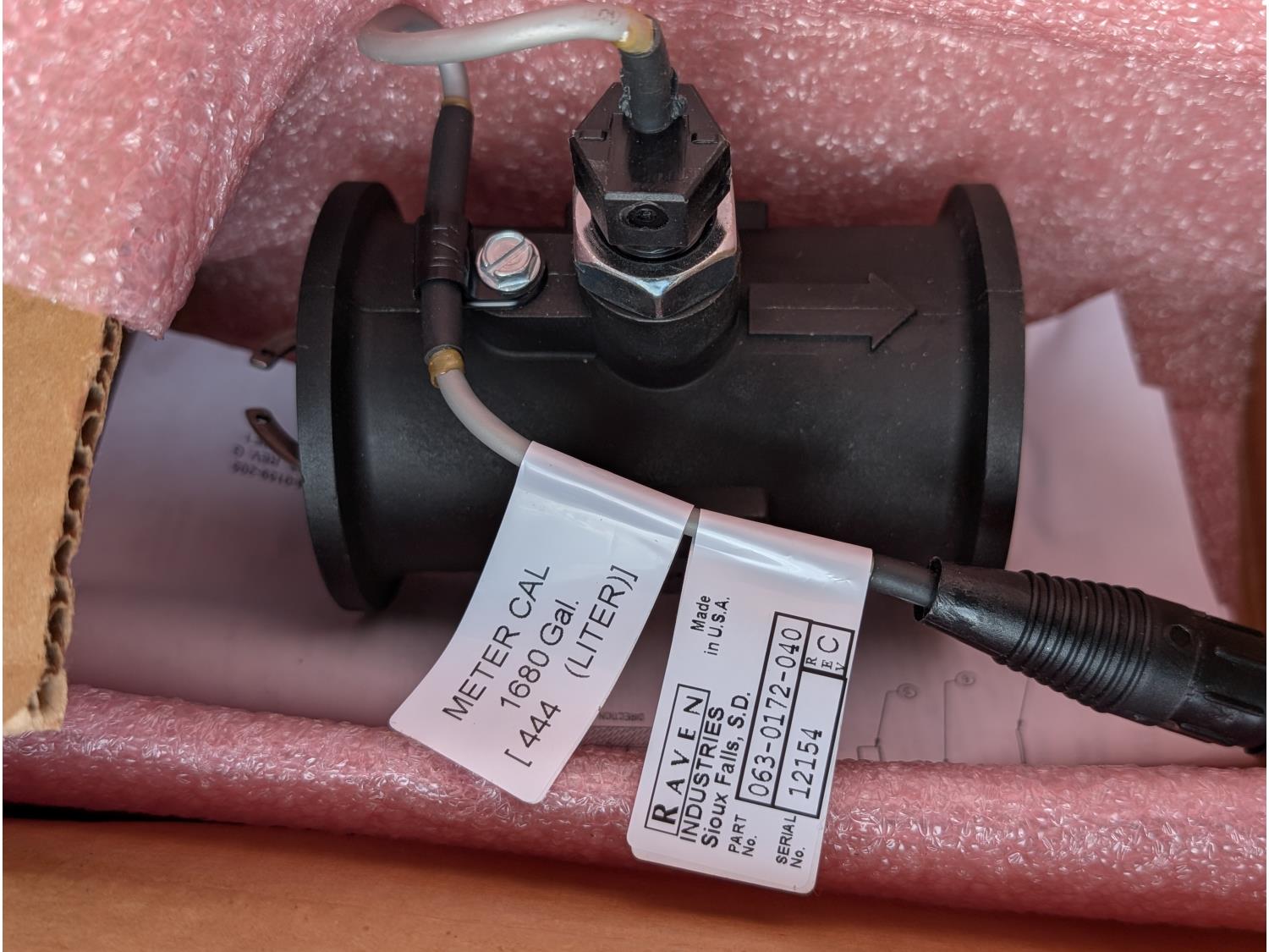 1537 Raven Industries 1-1/2 Inch Poly Flow Meter w/ Manifold Shut Off Valve