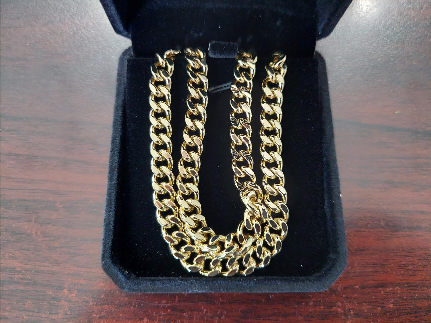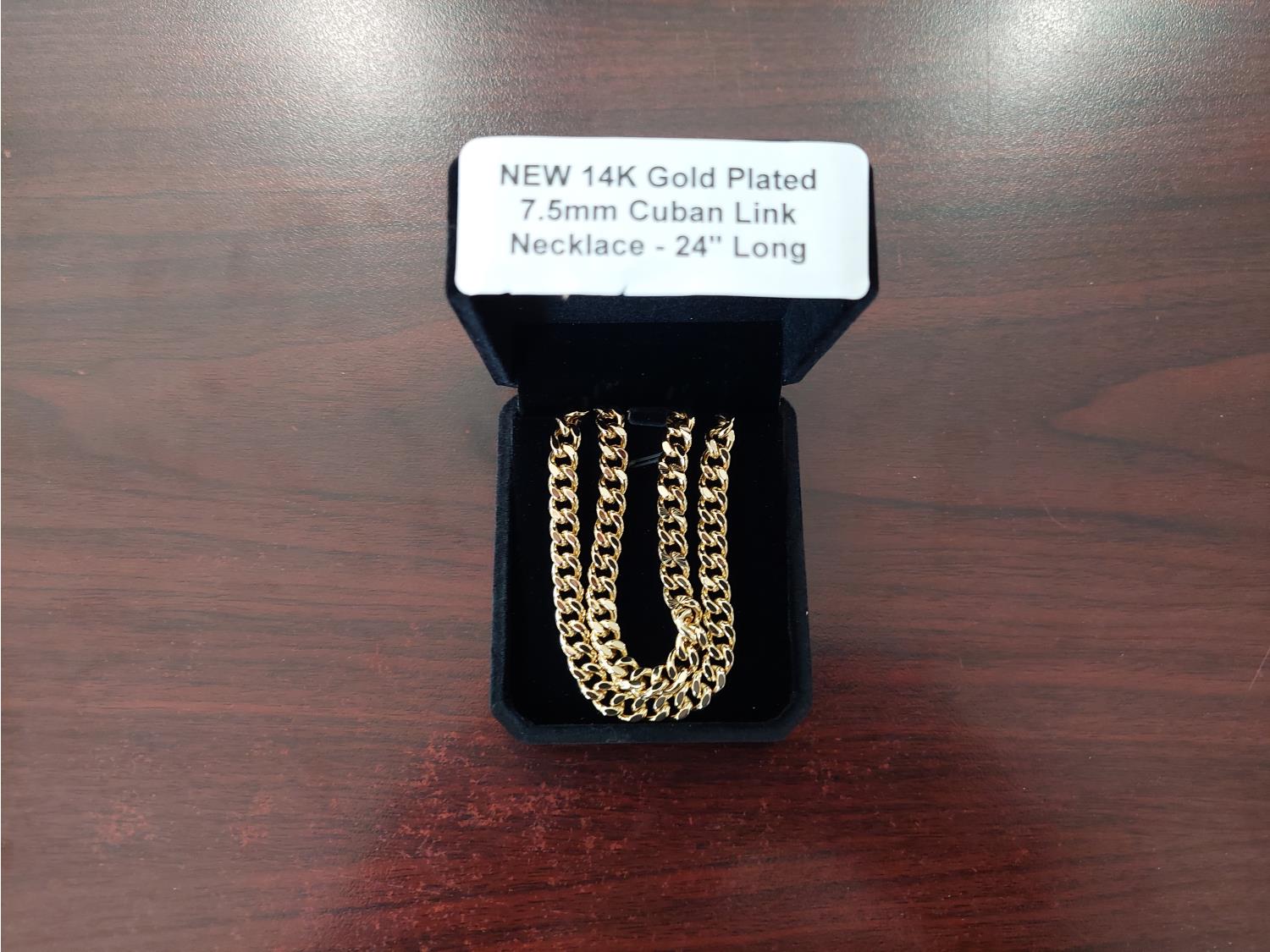 1107 Smartlife 14K Gold Plated 7.5mm Cuban Link Necklace (Unused)