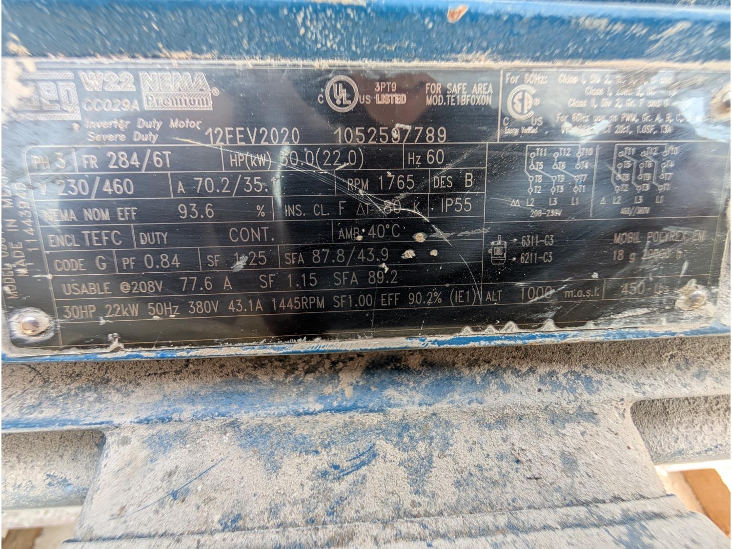 1442 WEG W22 30 HP Electric Motor (Unused)