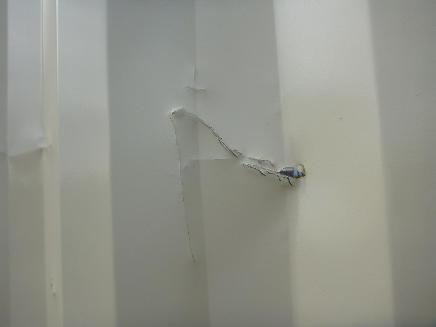 one time use, forklift pockets, man door, window, DAMAGE