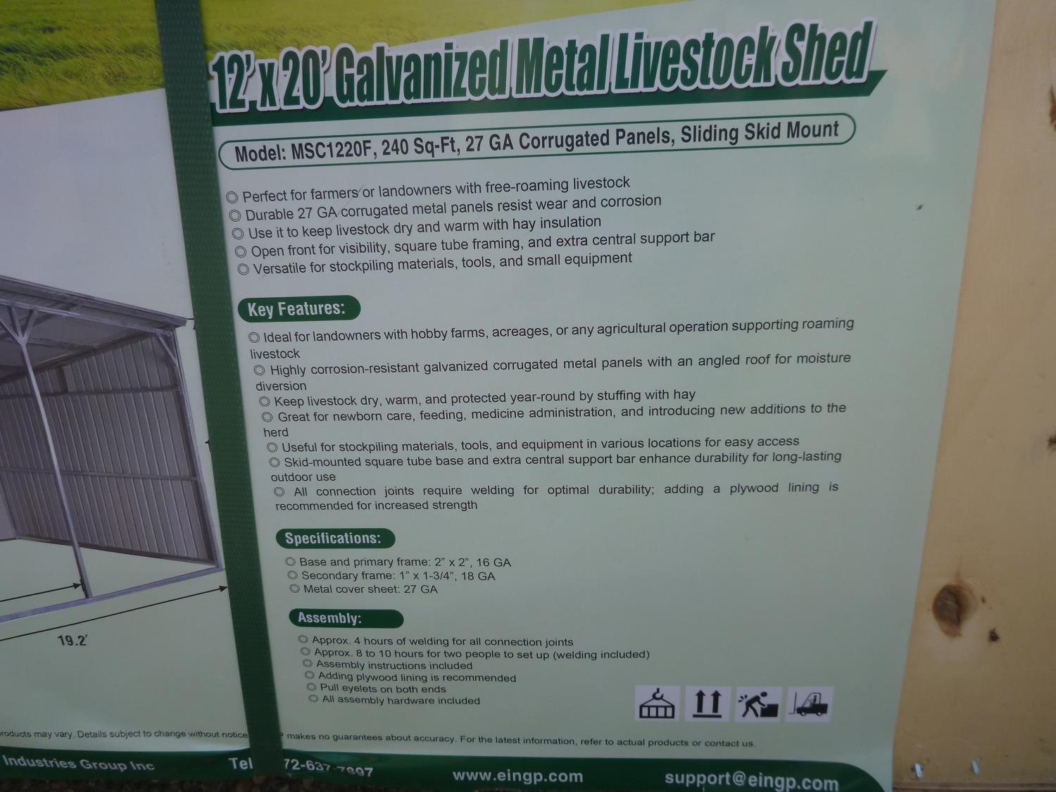 3819 12 Ft X 20 Ft Galvanized Metal Livestock Shed (Unused)