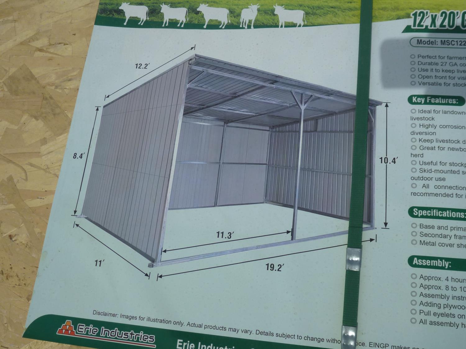 3930 12 Ft X 20 Ft Galvanized Metal Livestock Shed (Unused)