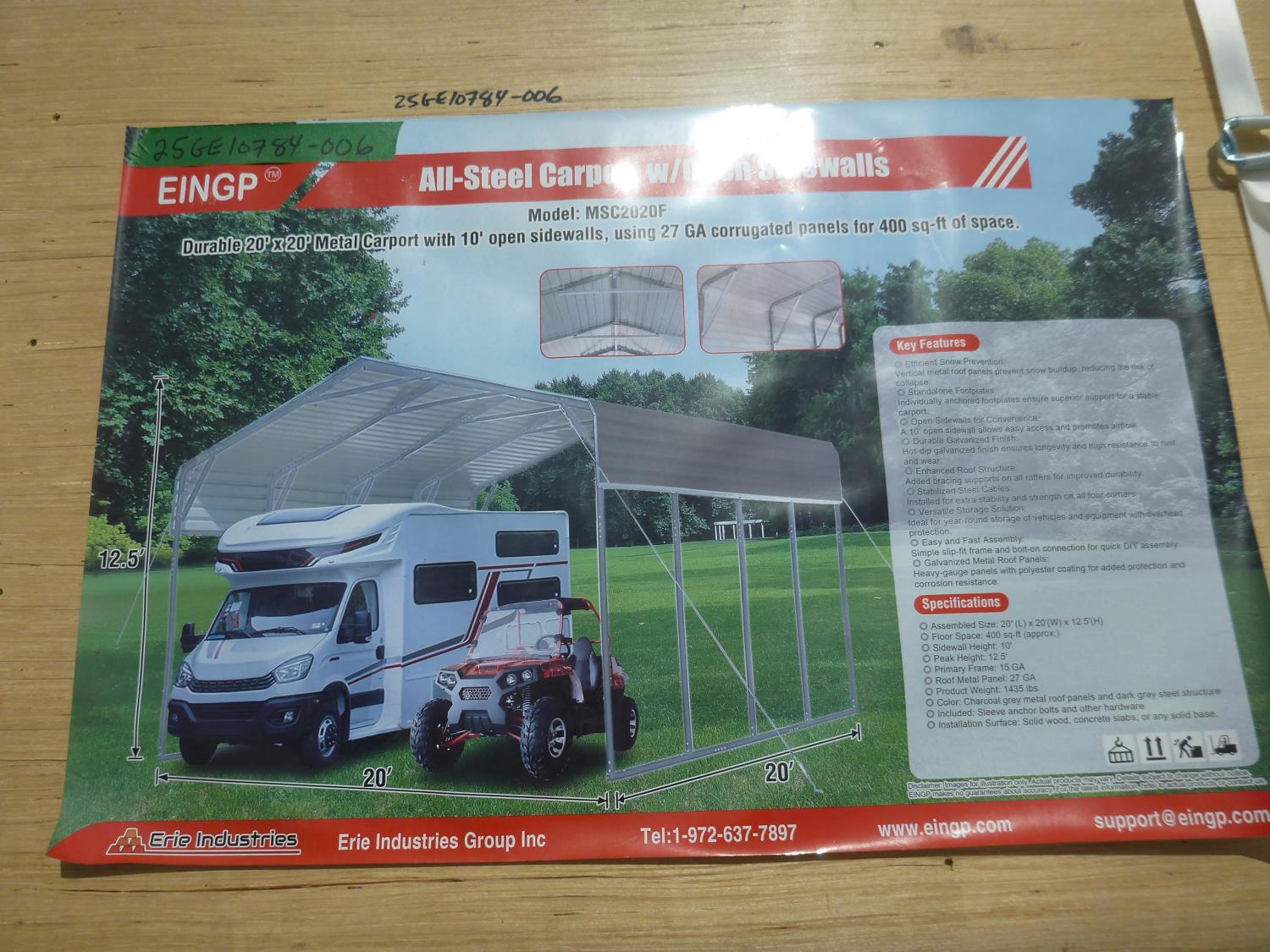 3914 20 Ft X 20 Ft All-Steel Carport (Unused)