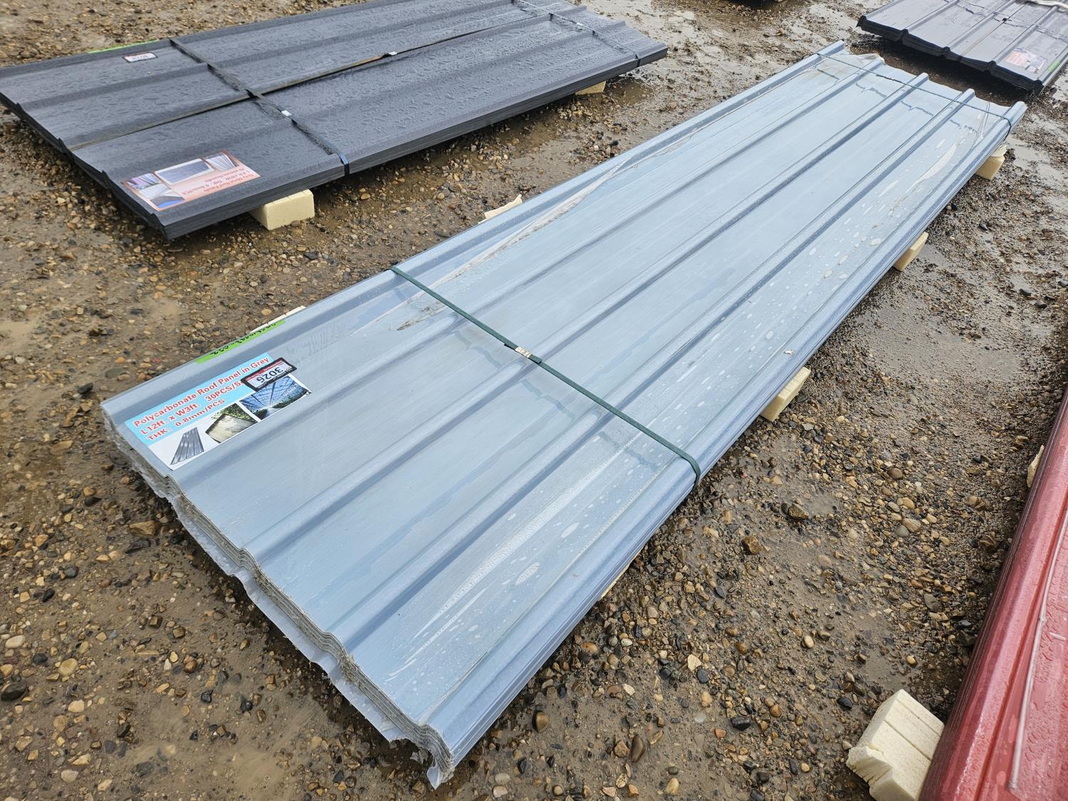 3026 (30) Grey Polycarbonate Roof Panels (Unused)