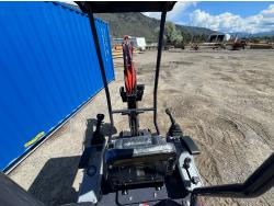 pilot controls, Zonsen 17HP gas engine, 16 inch dig bucket, manual thumb, 1 auxiliary hydraulics, 2 Ft 8 inch stick, backfill blade, rubber tracks