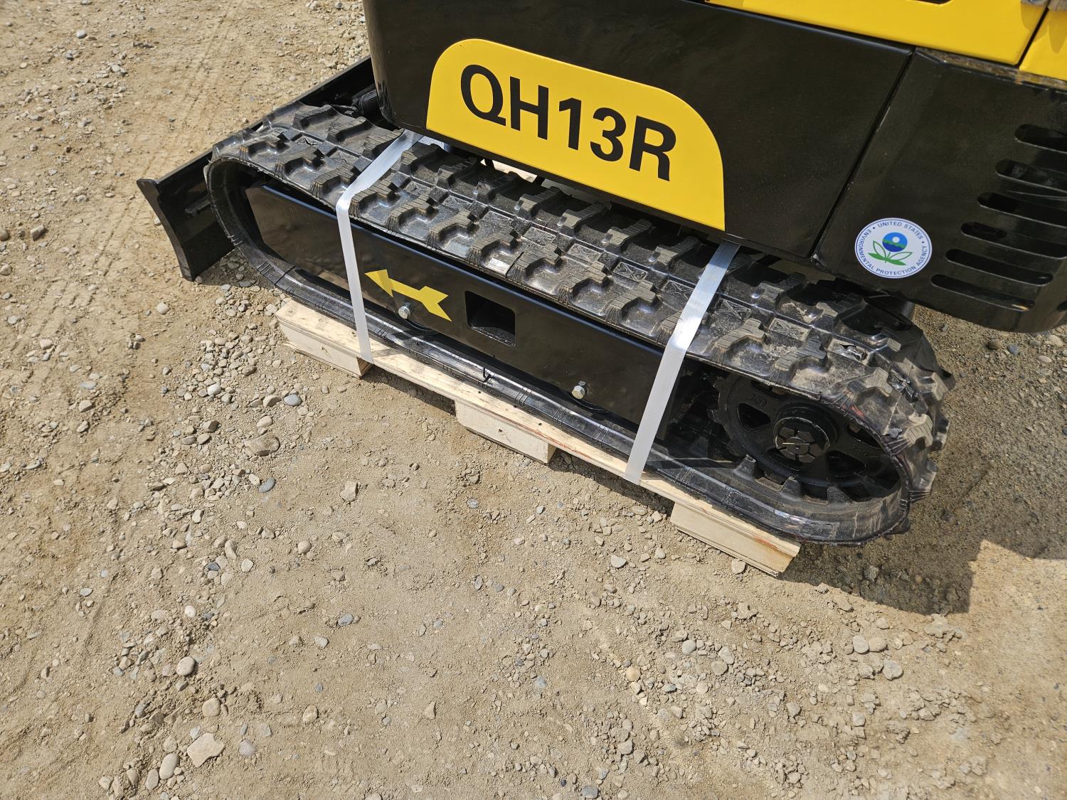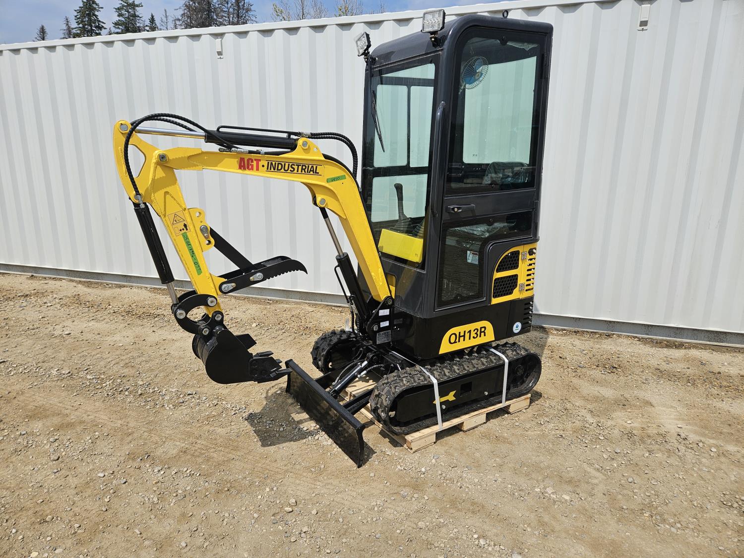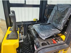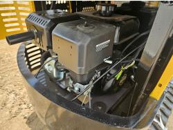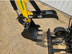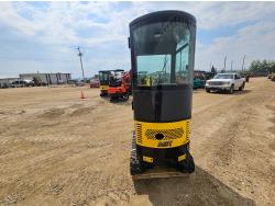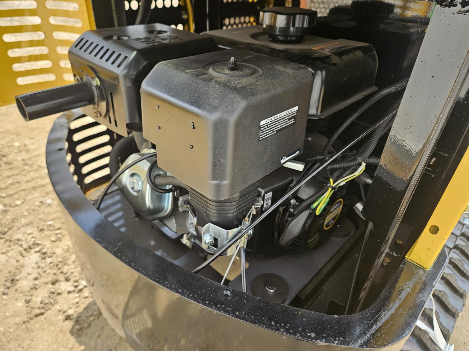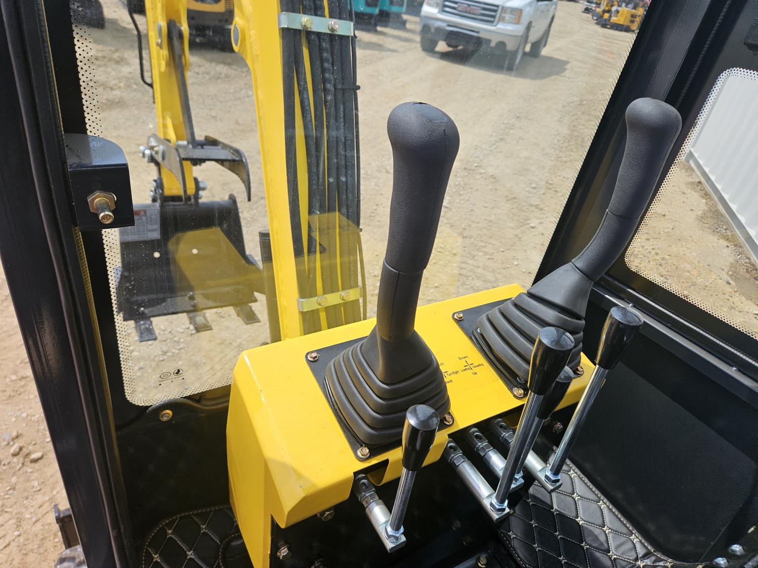 Enclosed cab, gas engine, 15 inch dig bucket, manual thumb, backfill blade, 7 inch rubber tracks