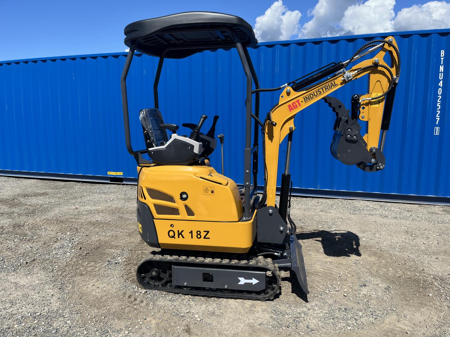 pilot controls, Zonsen 17 Hp gas engine, 16 inch dig bucket, hydraulic thumb, 1 auxiliary hydraulics, 2 Ft 8 inch stick, backfill blade, rubber tracks
