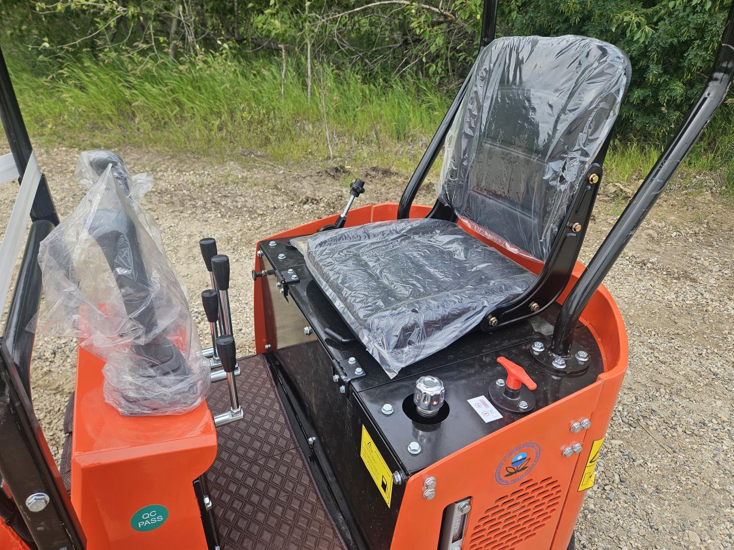 Open station, 15 HP gas engine, , 16 inch dig bucket, manual thumb, 2 Ft 8 inch stick, backfill blade, 36 inch backfill blade, 7 inch rubber tracks