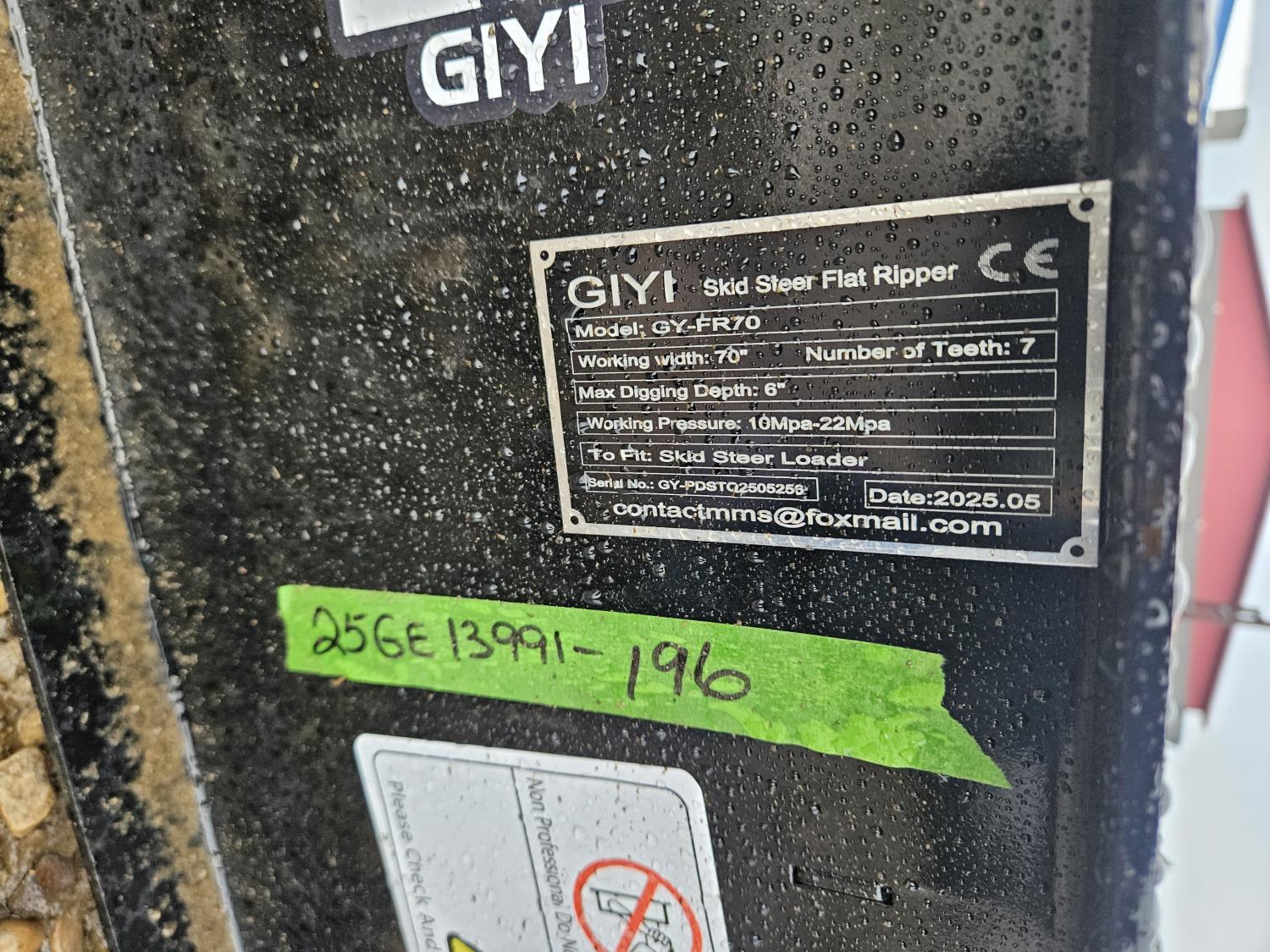 3538 Giyi GY-FR70 Flat Ripper Skid Steer Attachment