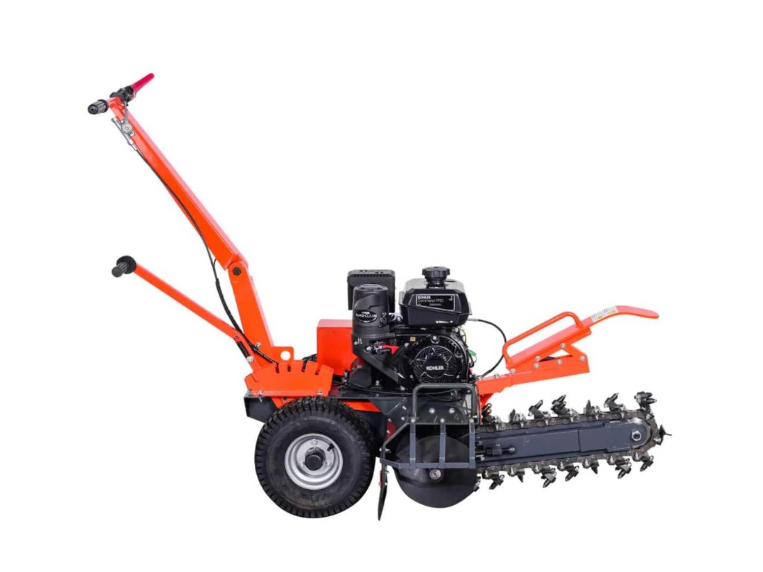 4 inch trench width, 18 inch trench depth, 7 HP Kohler powered gasoline engine, auto-feed auger