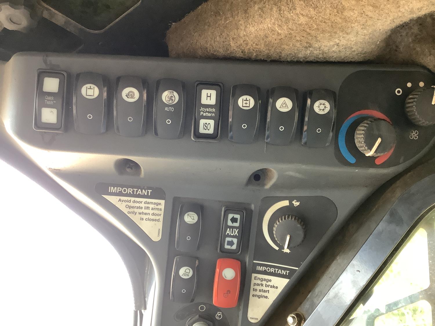 Enclosed cab, smooth bucket, 2 auxiliary hydraulics, rear weights