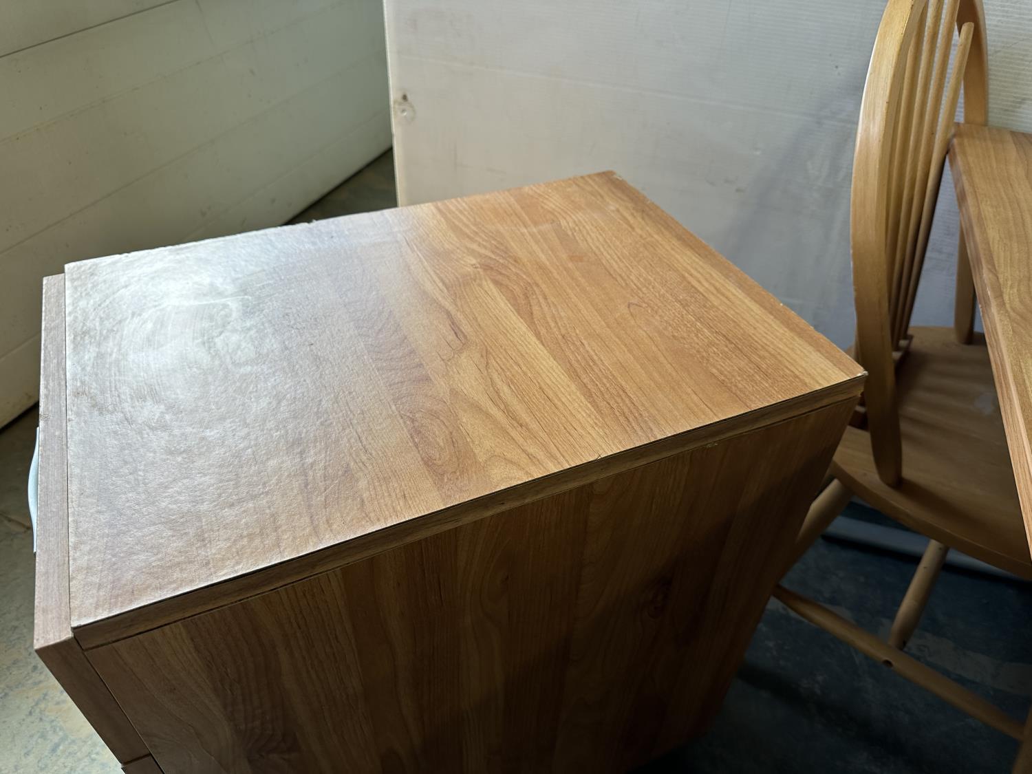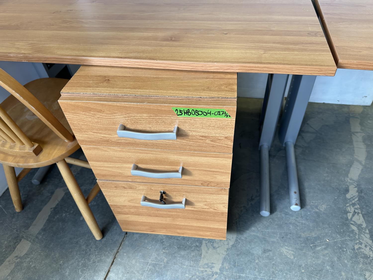 5386 (2) Desks, Chair and 3 Drawer Wheeled Cabinet