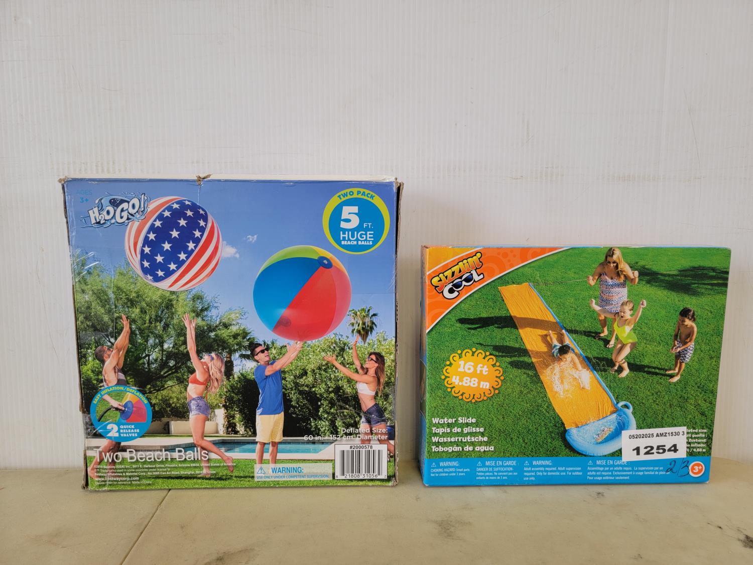 5097 2 Piece 5 Ft Beach Balls and 16 Ft Water Slide (Unused)