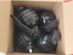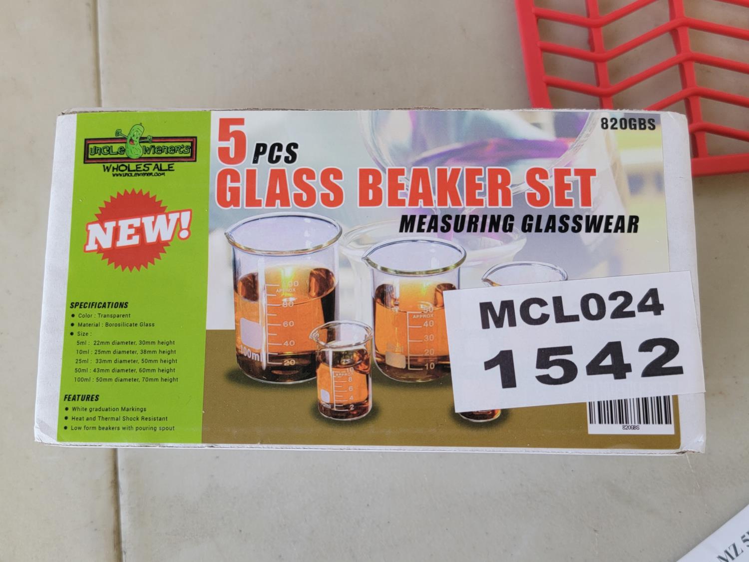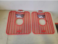 5037 (2) Sink Mats, Garden Buttons, 5 Piece Glass Beaker Set and 4 Piece Toy Grenades