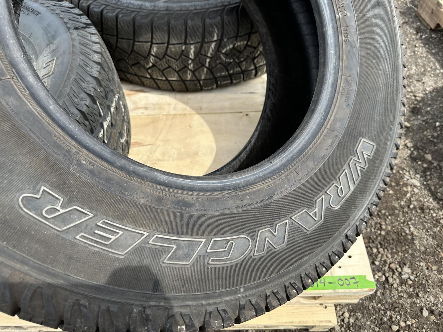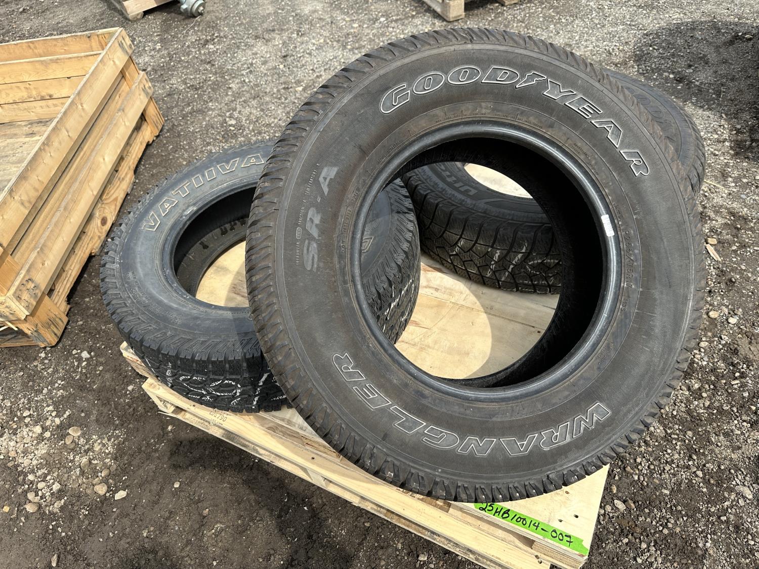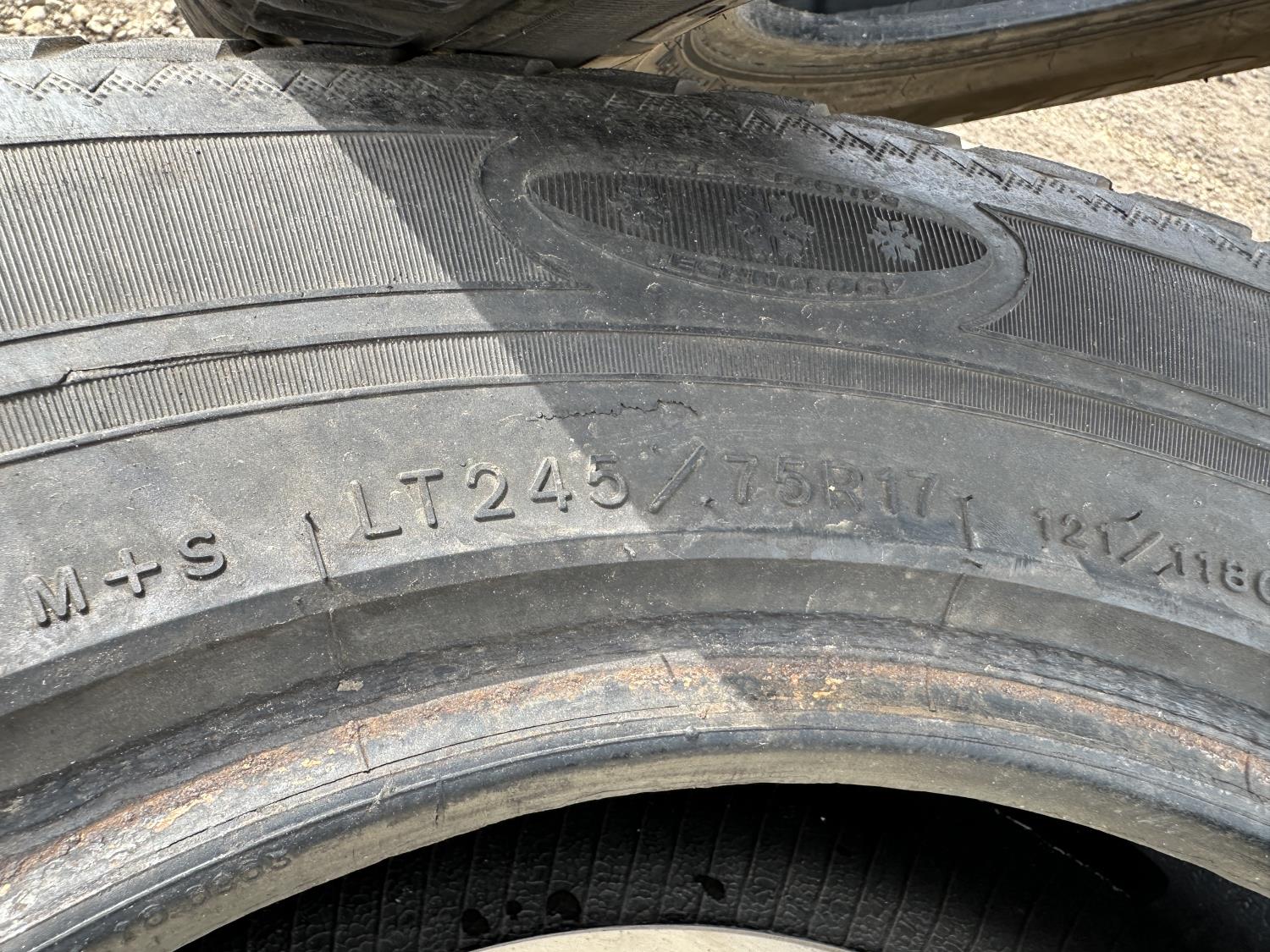 (2) Goodyear Ultragrip245/75R17 (1) Goodyear Wrangler 255/75R17, (1) Nokian 255/65R17