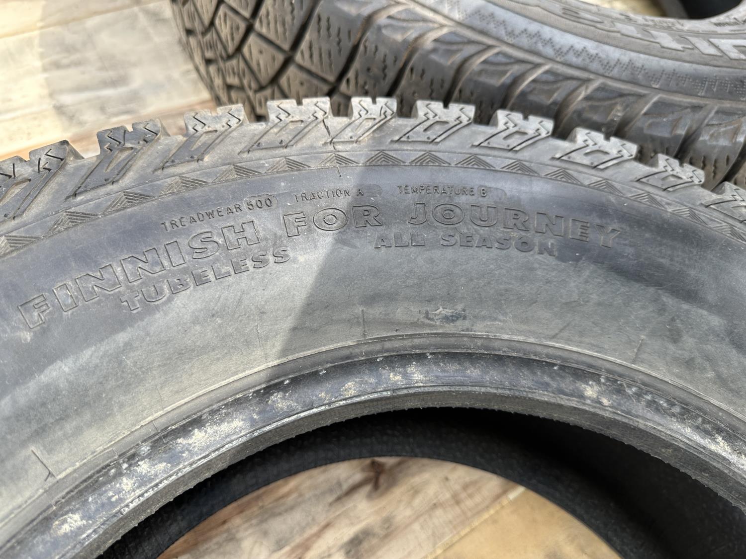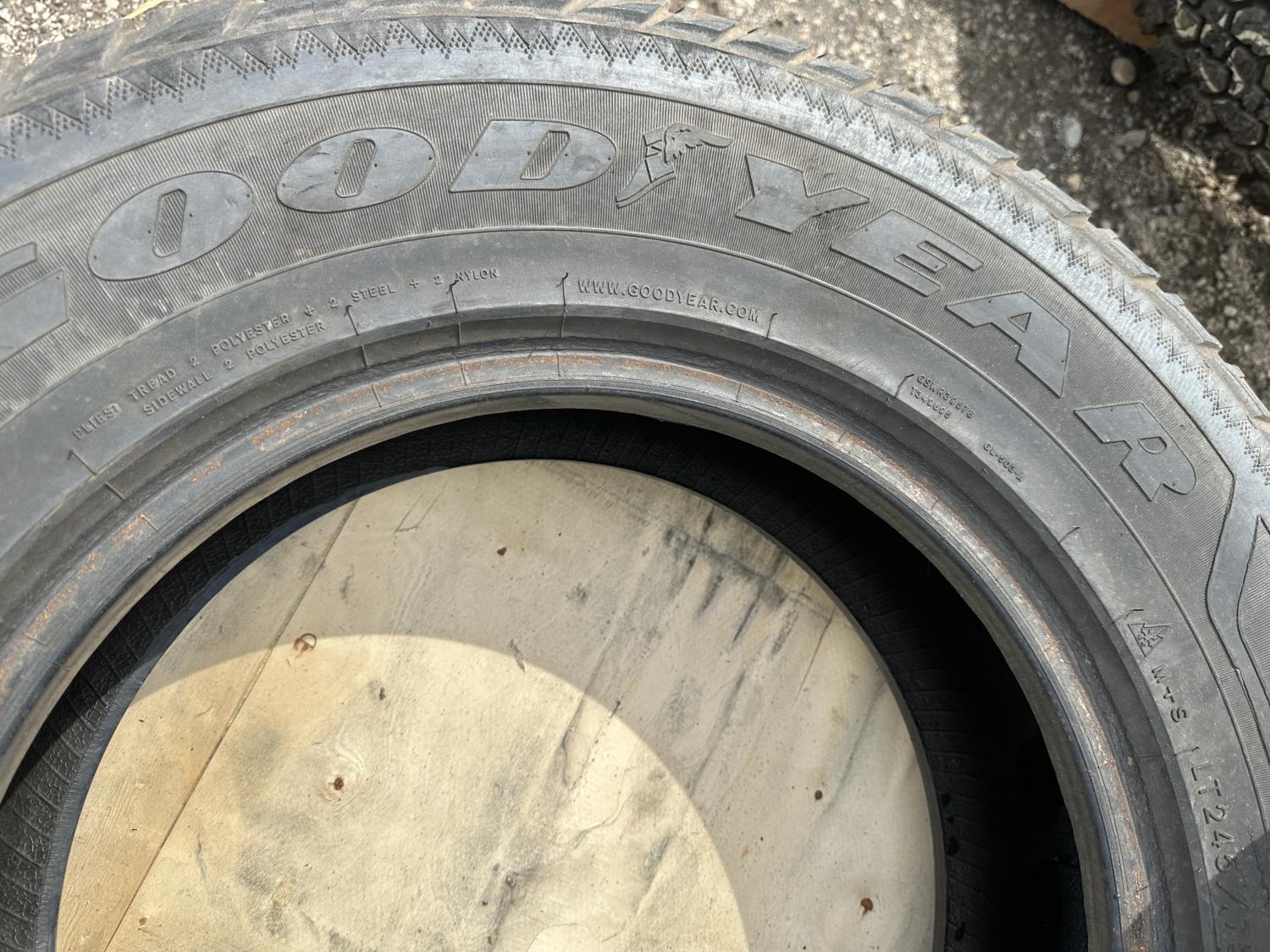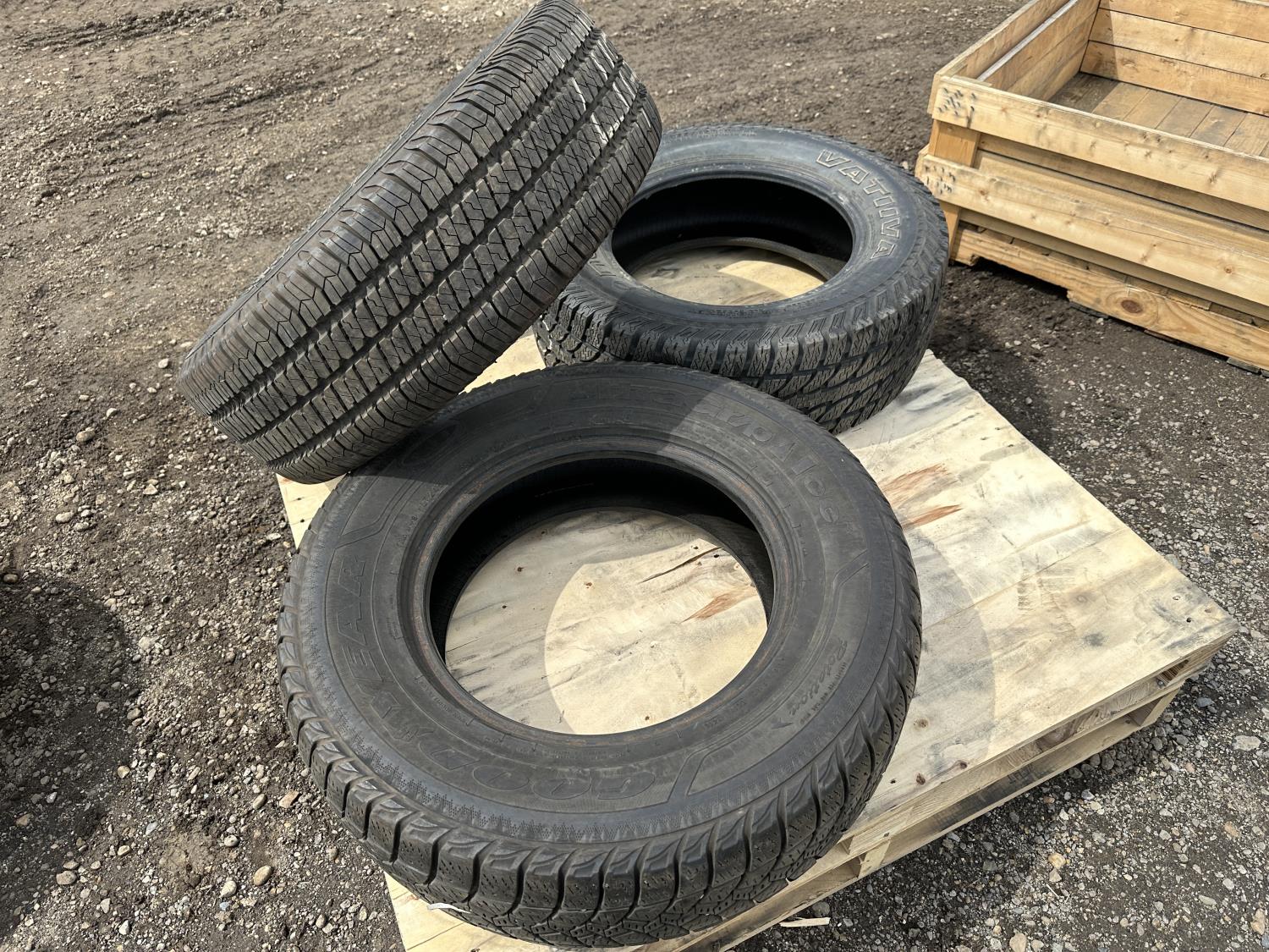 (2) Goodyear Ultragrip245/75R17 (1) Goodyear Wrangler 255/75R17, (1) Nokian 255/65R17