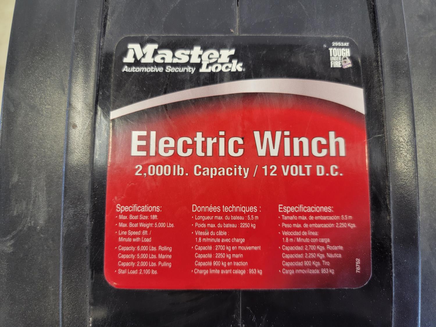 5425 Master Lock 12V 2000 lb Electric Winch
